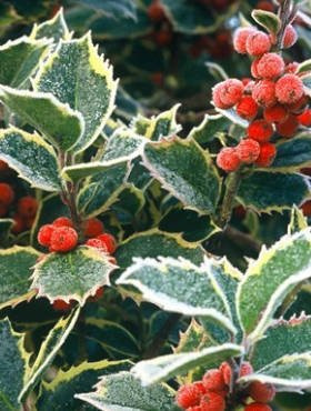 Odmianą, na której owoce utrzymują się od września aż do wiosny jest między innymi ostrokrzew 'Blue Prince' męski. Owoce rosnące na tym krzewie są jaskrawoczerwonego koloru i już z daleka przyciągają uwagę. Zimowy ogród ozdobi również ostrokrzew 'Blue princess' żeński, a także ostrokrzew Meservy 'Blue Angel'. We wrześniu pojawiają się także czerwone owoce wyjątkowo odpornego na mróz ostrokrzewu 'Hachfee' żeńskiego i pozostają na krzewie do końca zimy. Niskie temperatury równie dobrze znosi żeński ostrokrzew 'Golden Girl', który zachwyca rzadkimi u ostrokrzewów żółtymi owocami. Jeśli interesują Cię odmiany, które dobrze wytrzymują spadek temperatury poniżej -20?, odpowiedni będzie dla Ciebie także ostrokrzew 'Golden King'. Krzew ten ma charakterystyczny, piramidalny pokrój i ciemnozielone liście z żółtą obwódką. Mimo swojej nazwy, jest to żeńska odmiana.