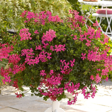 Sadzonki pelargonii możemy już uprawiać w maju, gdy ustana wiosenne przymrozki i możemy się nimi cieszyć , aż do późnej jesieni. Najpopularniejszymi odmianami są odmiany zwisające o liściach błyszczących, podobnych do liścia bluszczu. Kwiaty pelargonii są duże, składające się z kilku drobniejszych przykwiatków, osadzonych blisko siebie. W zależności od odmiany są osadzone na sztywnym pędzie lub zwisające i delikatne. Wybór kolorystyczny jest bardzo duży. Kwiaty o barwach białych, różowych, czerwonych, purpurowych, a nawet dwukolorowych. Ciekawostka jest, że kwiaty pelargonii są jadalne