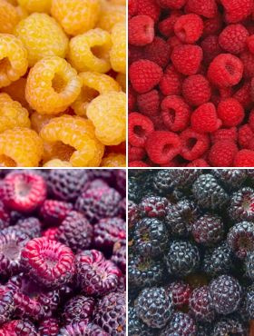 Malina zestaw 4 kolorów 4 szt sadzonki czerwona czarna żółta fioletowa