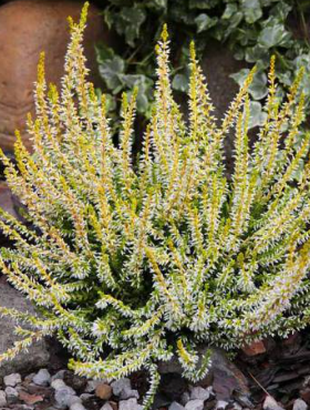Wrzos pospolity biały kwiat żółte liście sadzonki