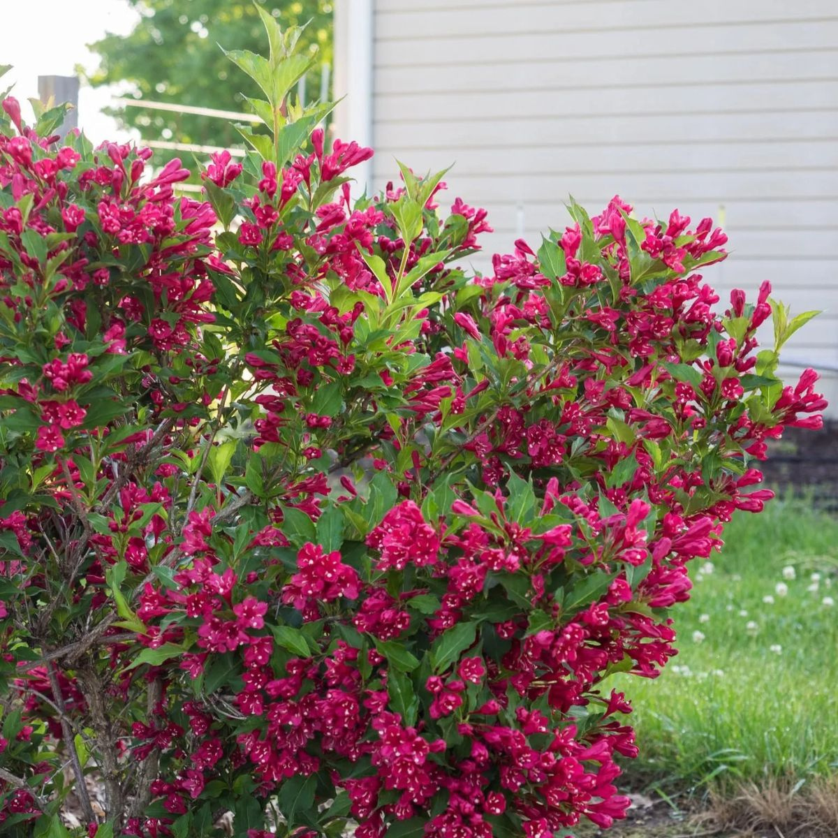 Krzewuszka cudowna Red Prince (Weigela florida 'Red Prince') to jedna z najbardziej efektownych odmian krzewuszki, znana i ceniona przede wszystkim za intensywnie czerwone kwiaty oraz zwartą formę wzrostu. Rośnie umiarkowanie – w sprzyjających warunkach osiąga docelowo od 1 do 1,5 metra wysokości i podobną szerokość, przy średnim rocznym przyroście wynoszącym około 20–30 centymetrów. Jej pokrój jest naturalnie zaokrąglony, gęsty i wyprostowany, co sprawia, że bardzo dobrze prezentuje się zarówno jako pojedynczy egzemplarz, jak i w nasadzeniach grupowych. Sadzonki krzewuszki tej odmiany są chętnie wybierane przez ogrodników do tworzenia efektownych kompozycji rabatowych oraz do sadzenia wzdłuż ścieżek, ogrodzeń czy na tle jasnych roślin.