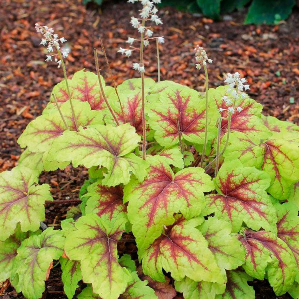 Żuraweczka Stoplight to wyjątkowa bylina, która przyciąga wzrok intensywnie żółtymi liśćmi z bordowym unerwieniem. Latem liście zmieniają kolor na limonkowo-zielony, zachowując swój unikalny urok. Roślina dorasta do 15-40 cm wysokości i 35 cm szerokości, tworząc zwarte, efektowne kępy. Od maja do czerwca ponad liśćmi wznoszą się cienkie łodygi, na których pojawiają się drobne, kremowo-białe kwiaty w kształcie dzwonków. Żuraweczka Stoplight jest mrozoodporna, łatwa w uprawie i odporna na choroby oraz szkodniki, co czyni ją doskonałym wyborem zarówno dla doświadczonych, jak i początkujących ogrodników. Sprawdź też inne sadzonki bylin, które urozmaicą Twój ogród.
