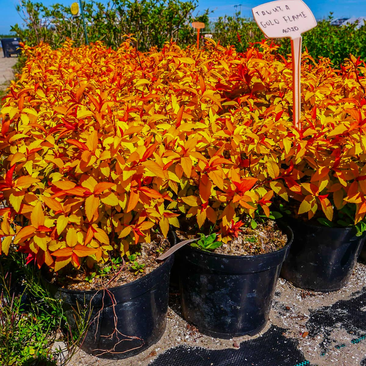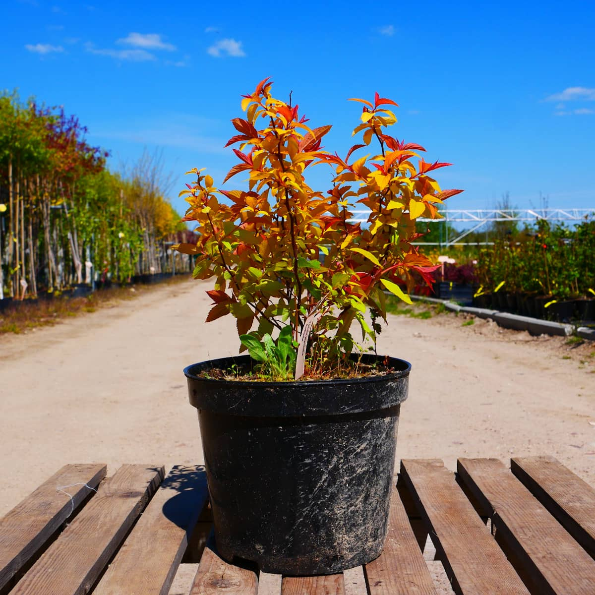 Tawuła japońska Goldflame (Spiraea japonica 'Goldflame') to niezwykle barwna odmiana o kompaktowym wzroście i ciekawym wybarwieniu liści, które zmieniają się z sezonu na sezon. Tworzy niski, kulisty i zwarty pokrój, dorastając do około 60–80 cm wysokości. Rośnie umiarkowanie szybko i bardzo dobrze zagęszcza się po przycięciu. Jej największym atutem jest intensywna kolorystyka liści, która zmienia się z pomarańczowożółtej wiosną, przez złocistożółtą latem, aż po ciepłe odcienie czerwieni jesienią. Sadzonki tawuły Goldflame są często wybierane do ogrodów przydomowych i miejskich z uwagi na silny efekt dekoracyjny przez cały sezon. Ta tawuła przyciąga wzrok od pierwszych dni wegetacji aż do jesieni. Dzięki wyjątkowemu ubarwieniu i łatwości w pielęgnacji, sadzonki krzewów liściastych Goldflame cieszą się dużą popularnością. Roślina ta świetnie sprawdza się w kompozycjach sezonowych i kontrastowych zestawieniach kolorystycznych.