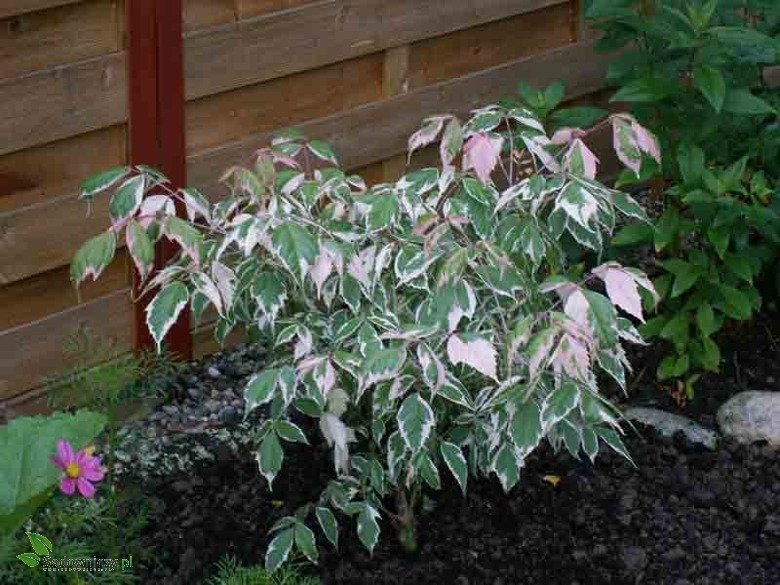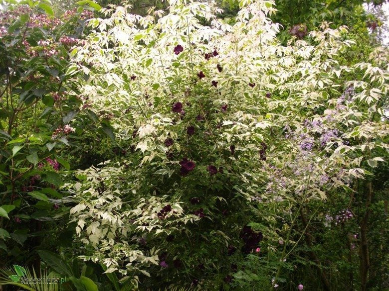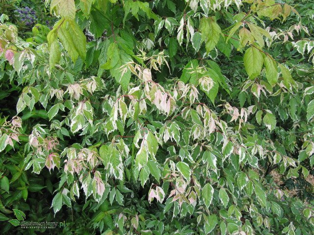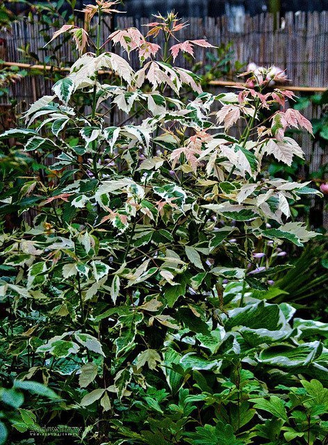 Forma krzaczasta popularnego klonu jesieniolistnego, dorastająca do 7 m wysokości oraz 4 m szerokości. Młode pędy i liście karminowo- różowe, biało pstre, stopniowo zieleniejące. Szczególnie dekoracyjny w okresie silnego wzrostu. Roczne przyrosty ok. 20 cm.