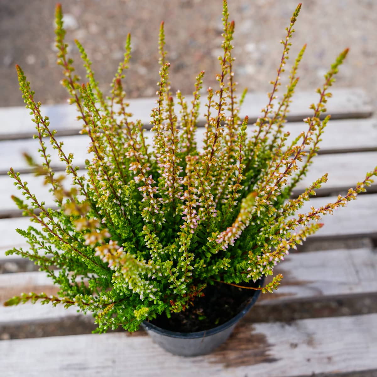 Wrzos pospolity Melissa to wyjątkowa, licencyjna odmiana wrzosu pączkowego o delikatnych, jasno różowych kwiatach oraz jasnozielonych liściach. Ta zimozielona sadzonka charakteryzuje się zwartym, kępiastym pokrojem i dorasta do około 20-30 cm wysokości. Kwiaty pozostają zamknięte w pąku aż do pierwszych przymrozków, dzięki czemu cieszą oko intensywnym kolorem przez długi czas, nawet do listopada.