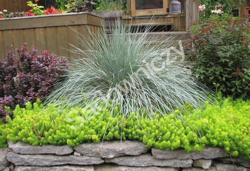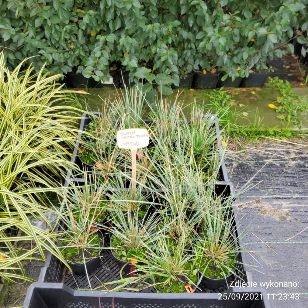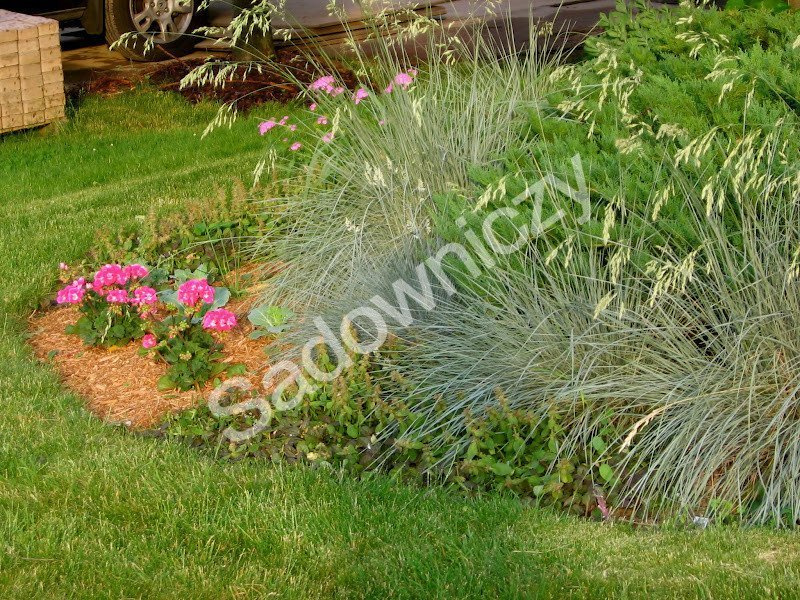 Wyjątkowo ozdobna trawa tworząca kępy dorastające wysokości ok. 40 cm.Kłosy kwiatowe wyrastają do 100 cm oraz kwitną na przełomie czerwca i lipca.Liście zimozielone, sztywne w kolrze niebieskawym.
