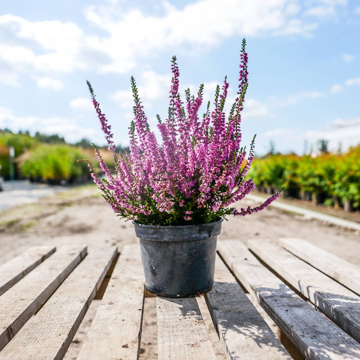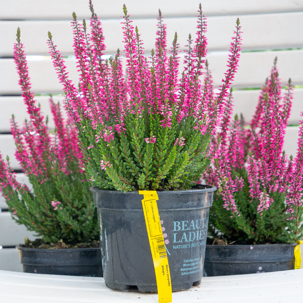 Wrzos pospolity 'Allegro' (Calluna vulgaris 'Allegro') to jedna z najbardziej cenionych i ponadczasowych odmian wrzosów ogrodowych. Silnie rosnąca, zimozielona krzewinka o kępiastym pokroju zachwyca obfitością kwitnienia oraz gęstą, zwartą formą. Jej purpurowoczerwone, dzwonkowate kwiaty tworzą wydłużone grona, które stanowią niezwykle efektowną dekorację w drugiej połowie lata i jesienią. Doskonale sprawdza się jako roślina okrywowa, a także w kompozycjach na rabatach, wrzosowiskach czy w donicach na balkonach i tarasach.