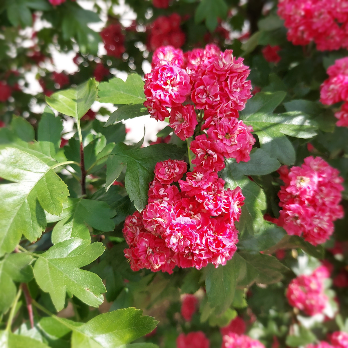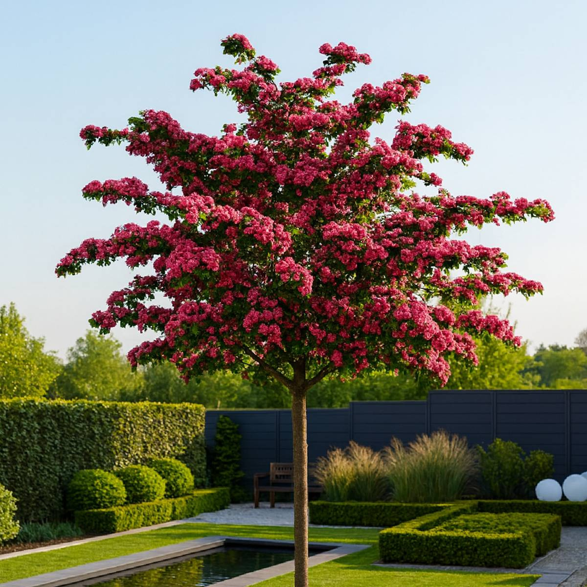 Głóg 'Paul’s Scarlet' szczepiony na pniu – sadzonka o kulistej koronie i tysiącach drobnych kwiatów