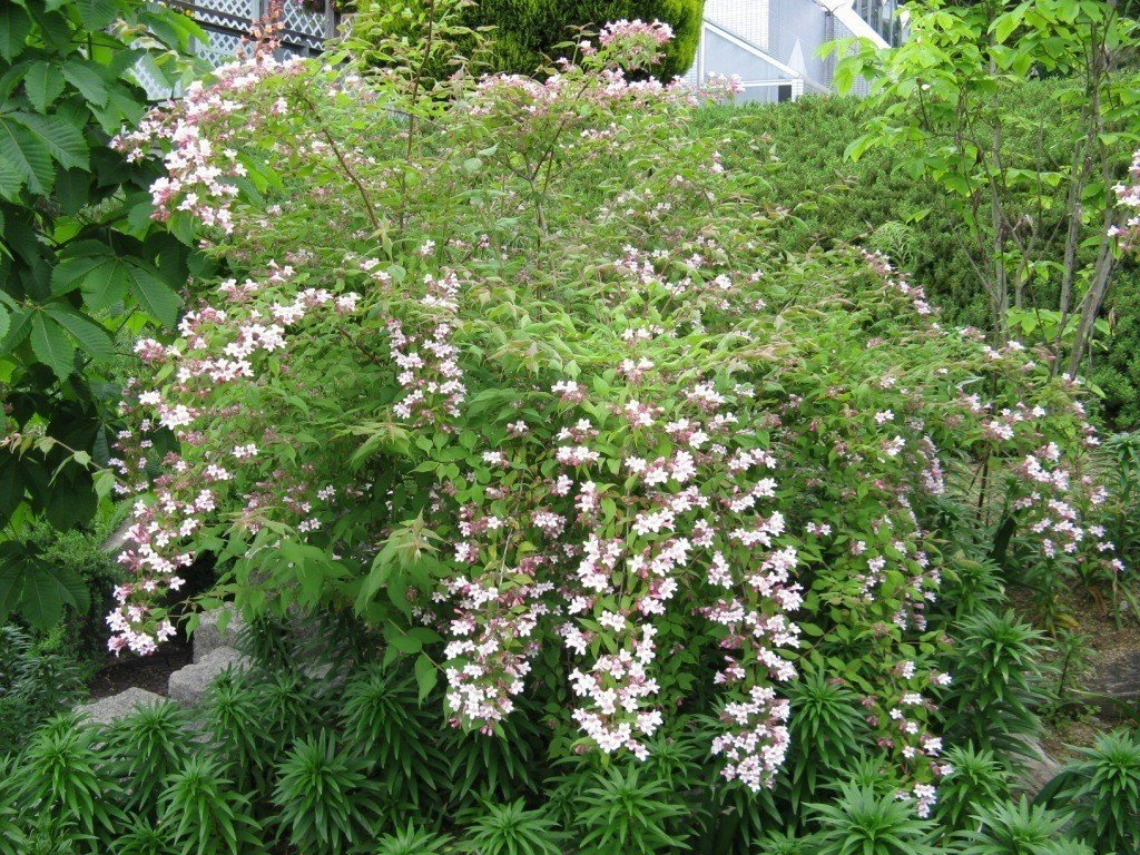 Kolkwicja chińska to prawdziwy biały kruk w ogrodzie, ponieważ gdy zakwita, obsypany licznymi różowo białymi kwiatami, które rozwijając się, bardzo często przysłaniają liście. Kwiaty osadzone są na zeszłorocznych gałęziach.