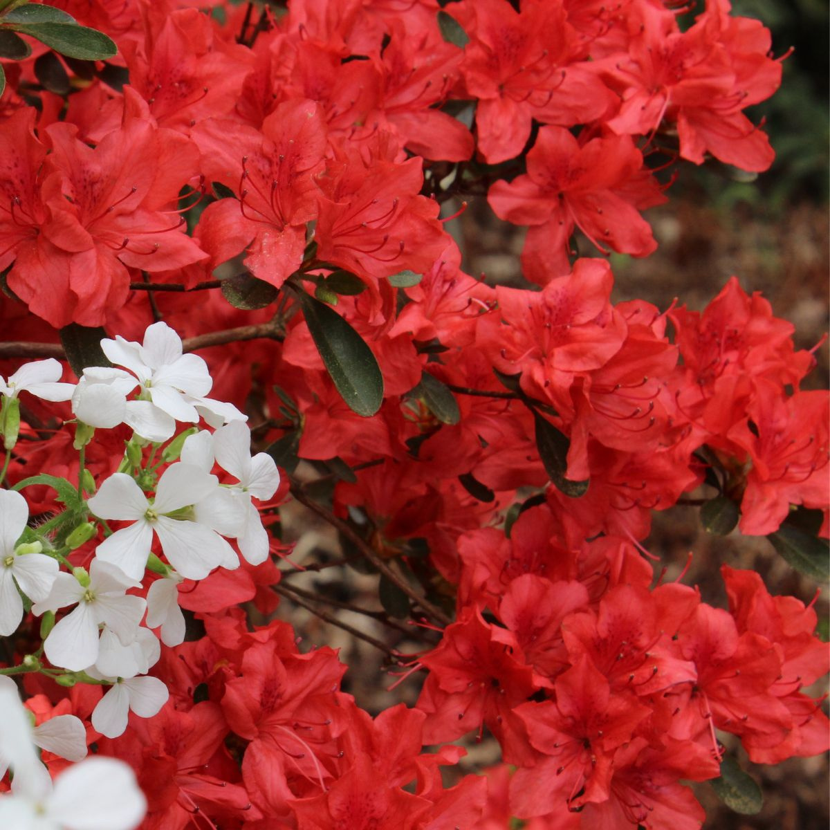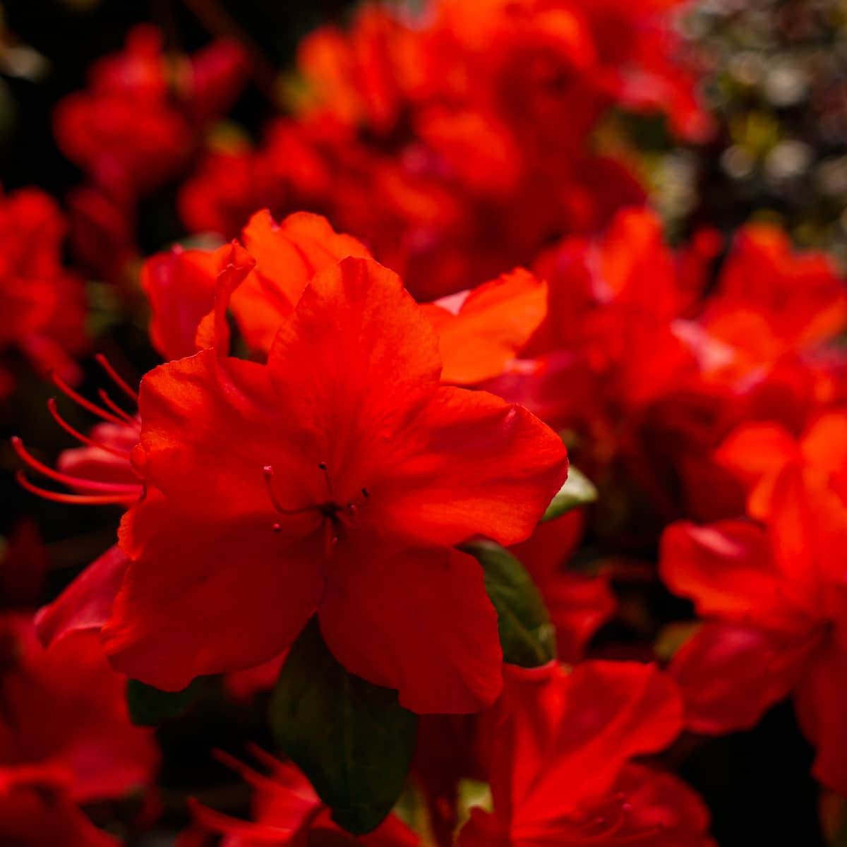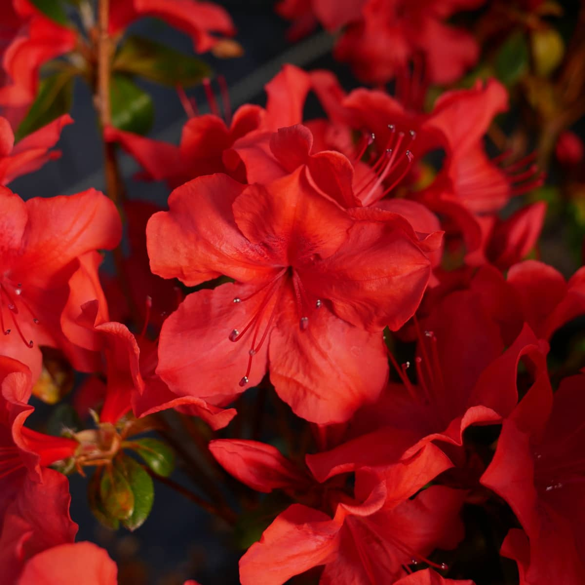 Azalia japońska ciemno-czerwona Krwista – intensywnie kwitnący krzew o zimozielonych liściach
