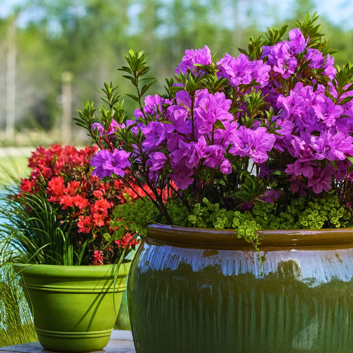 Azalia japońska Awangardowa fioletowa to zachwycająca odmiana wyróżniająca się intensywnie fioletowymi, głębokimi kwiatami, które wiosną pokrywają niemal cały krzew. Jest to roślina wolnorosnąca – po około 10 latach osiąga ok. 1–1,5 m wysokości. Jej zimozielone, błyszczące, eliptyczne liście o długości 2–5 cm stanowią ozdobę ogrodu przez cały rok, a barwa kwiatów nadaje kompozycjom wyjątkowo elegancki, nowoczesny charakter.