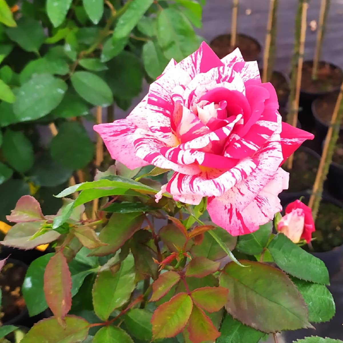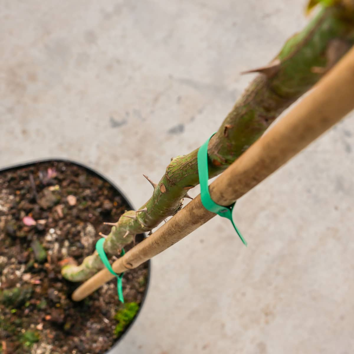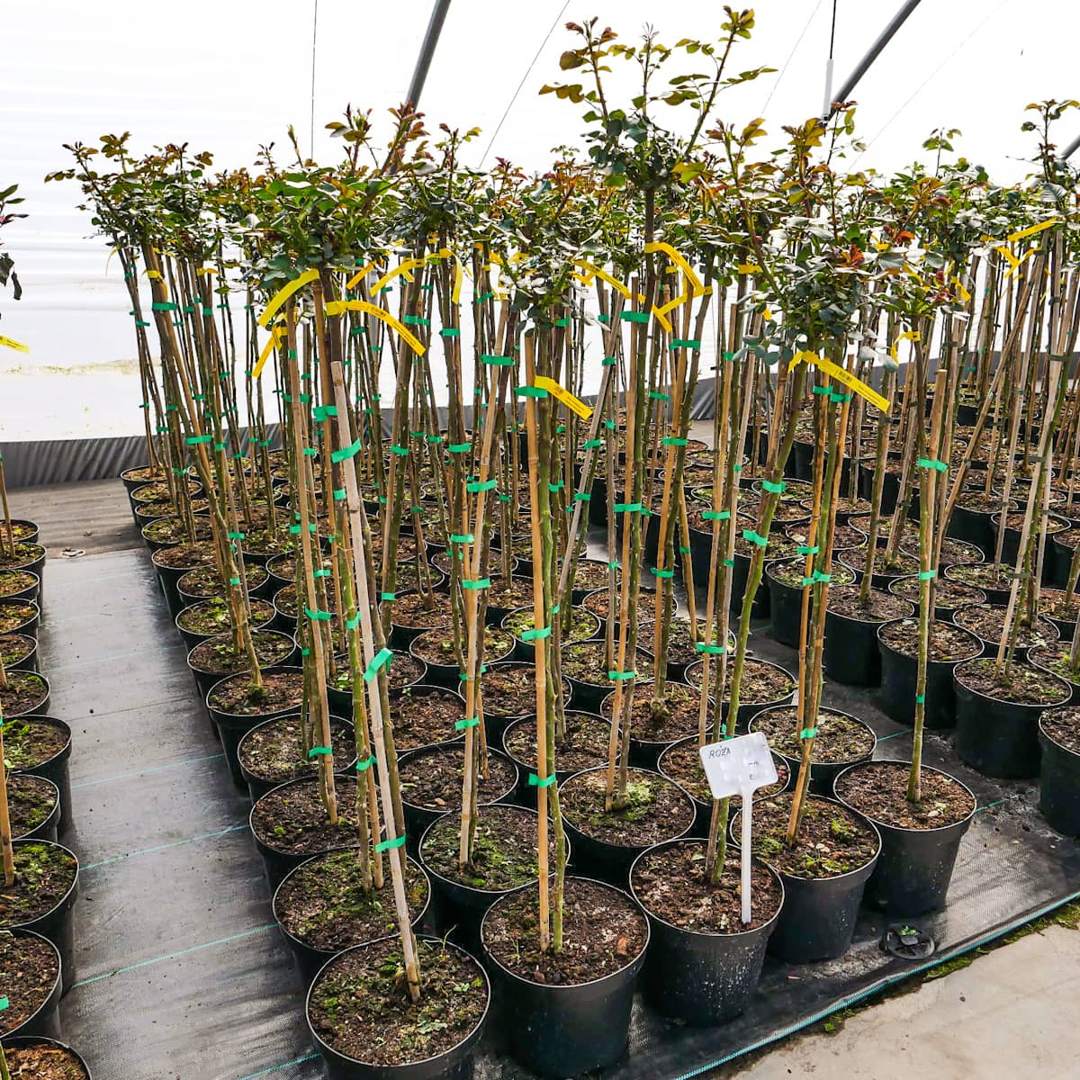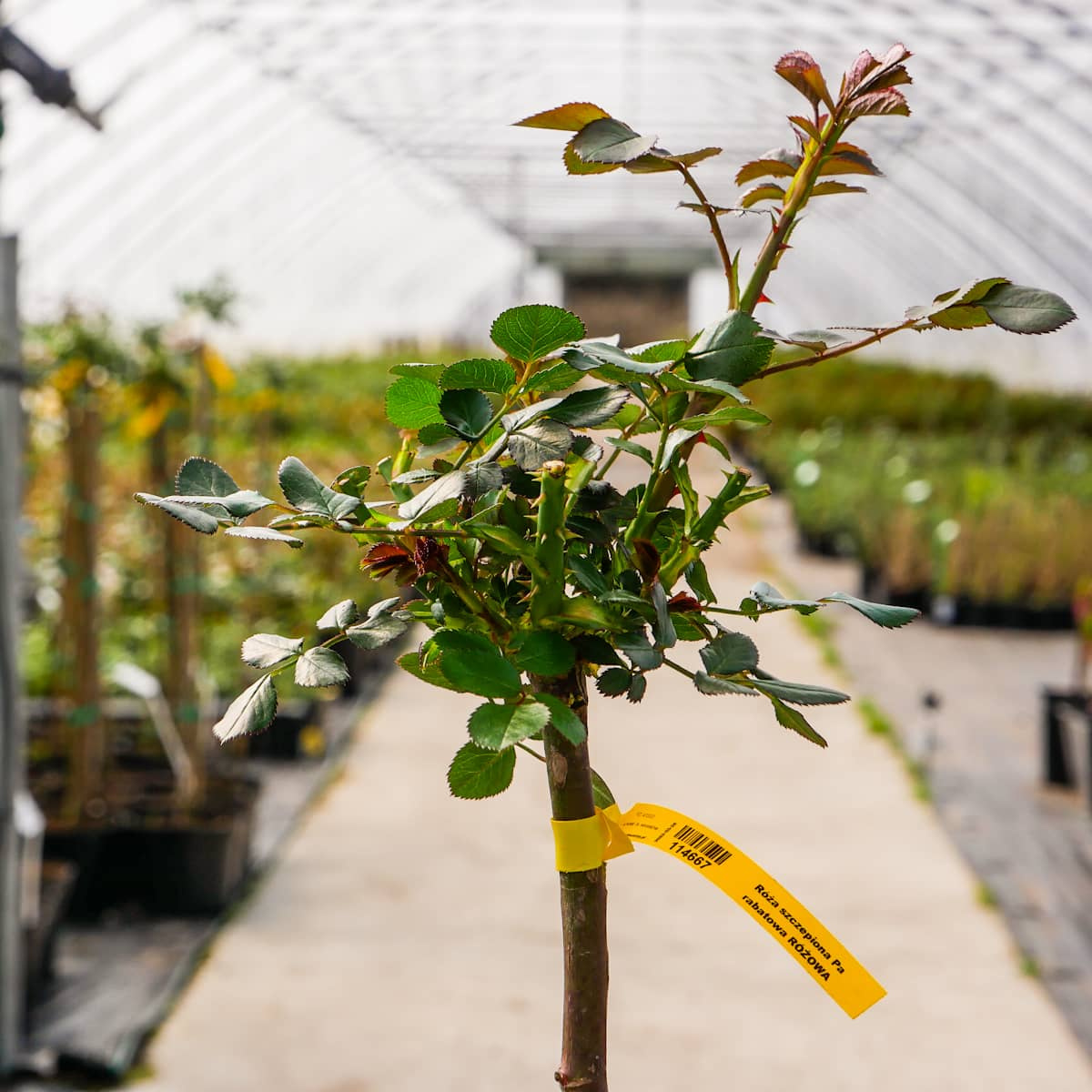 Róża szczepiona na wysokości 100-120cm, w pojemniku C3. Całkowita wielkość sadzonki ok 120-160 cm.