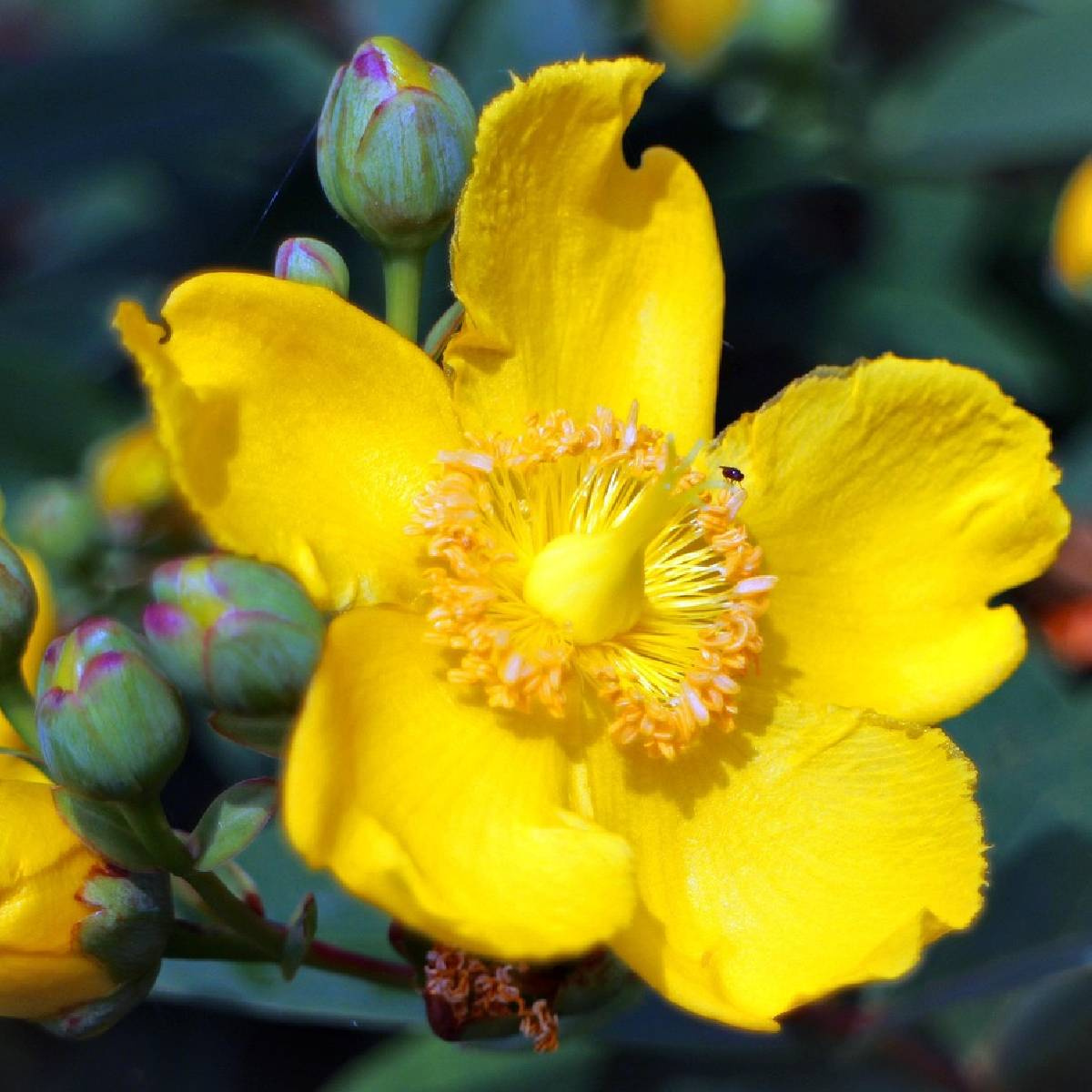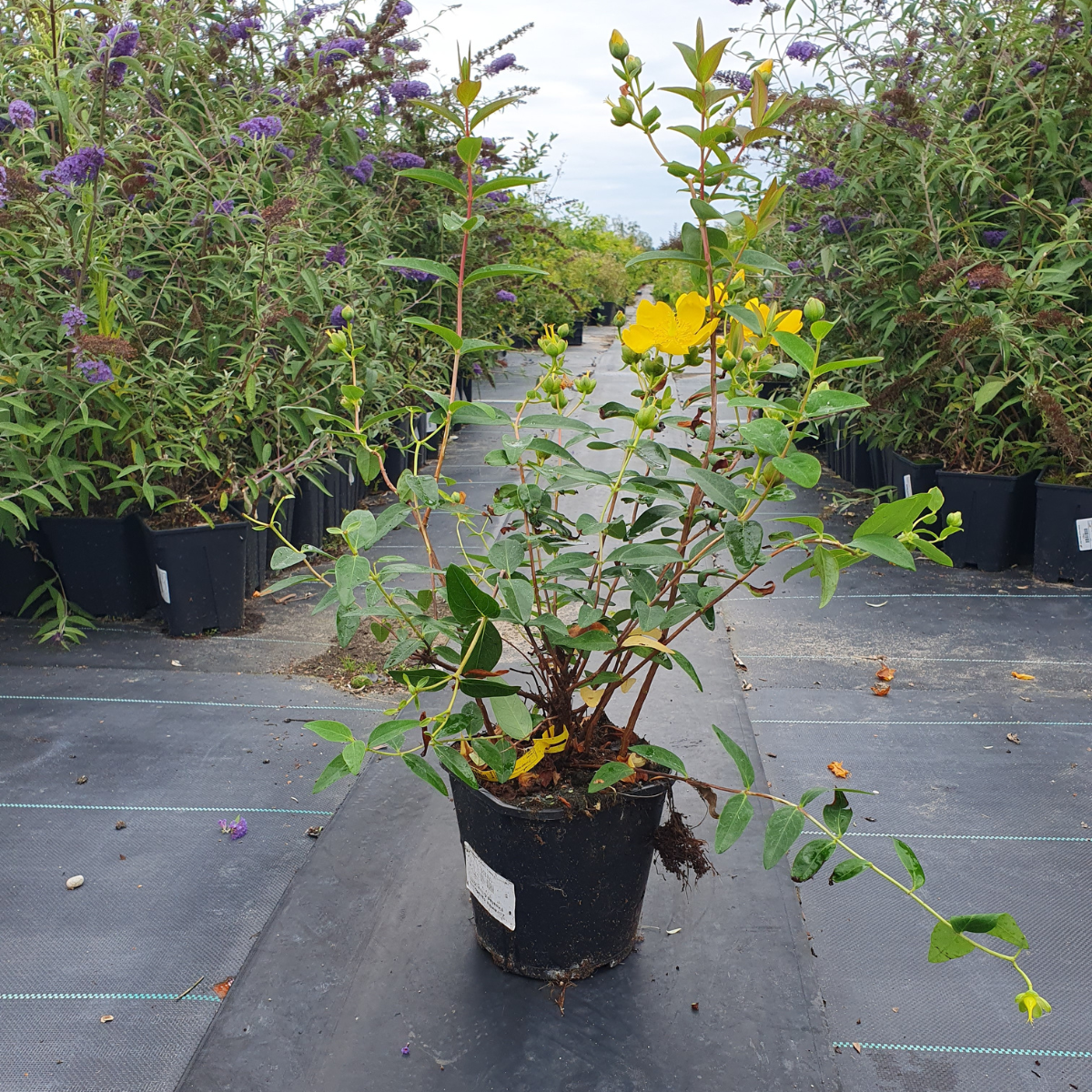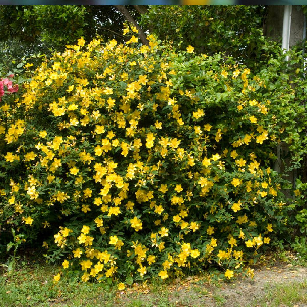 Dziurawiec to niski krzew ozdobny z kwiatów, osiągający do 1 m wysokości i szerokości.