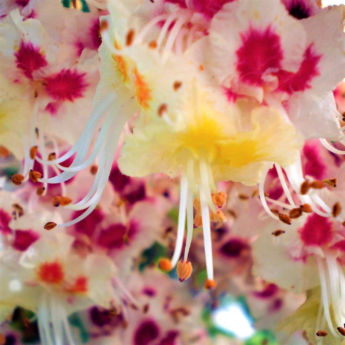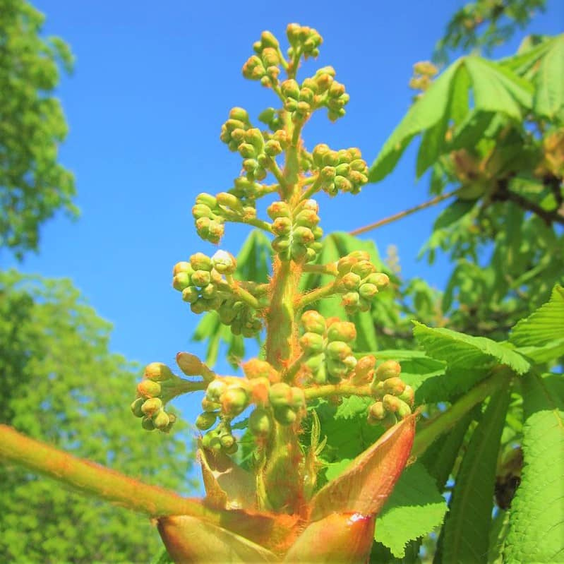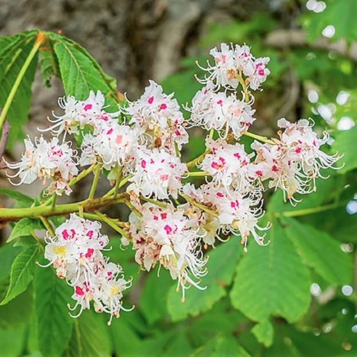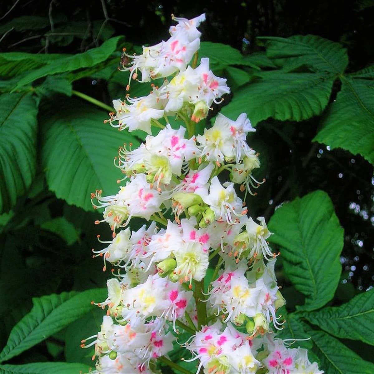 Kwiaty 5-krotne, śnieżnobiałego koloru, w wielkich prostych wiechowatych kwiatostanach w kształcie piramidy do 30 cm - miododajne.