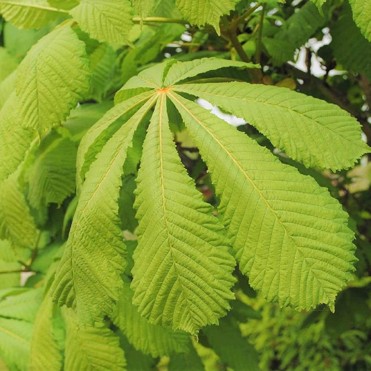 Liście naprzeciwległe, złożone, dłoniastopierzaste 5-7 listkowe, ostro zaostrzone na szczycie o 25cm dł. oraz 10cm szer., ogonek zgrubiały u nasady do 20 cm długości. Z wierzchu ciemnozielone od spodu jaśniejsze, nagie. Na jesieni złotożółte do brązowożółtych.
