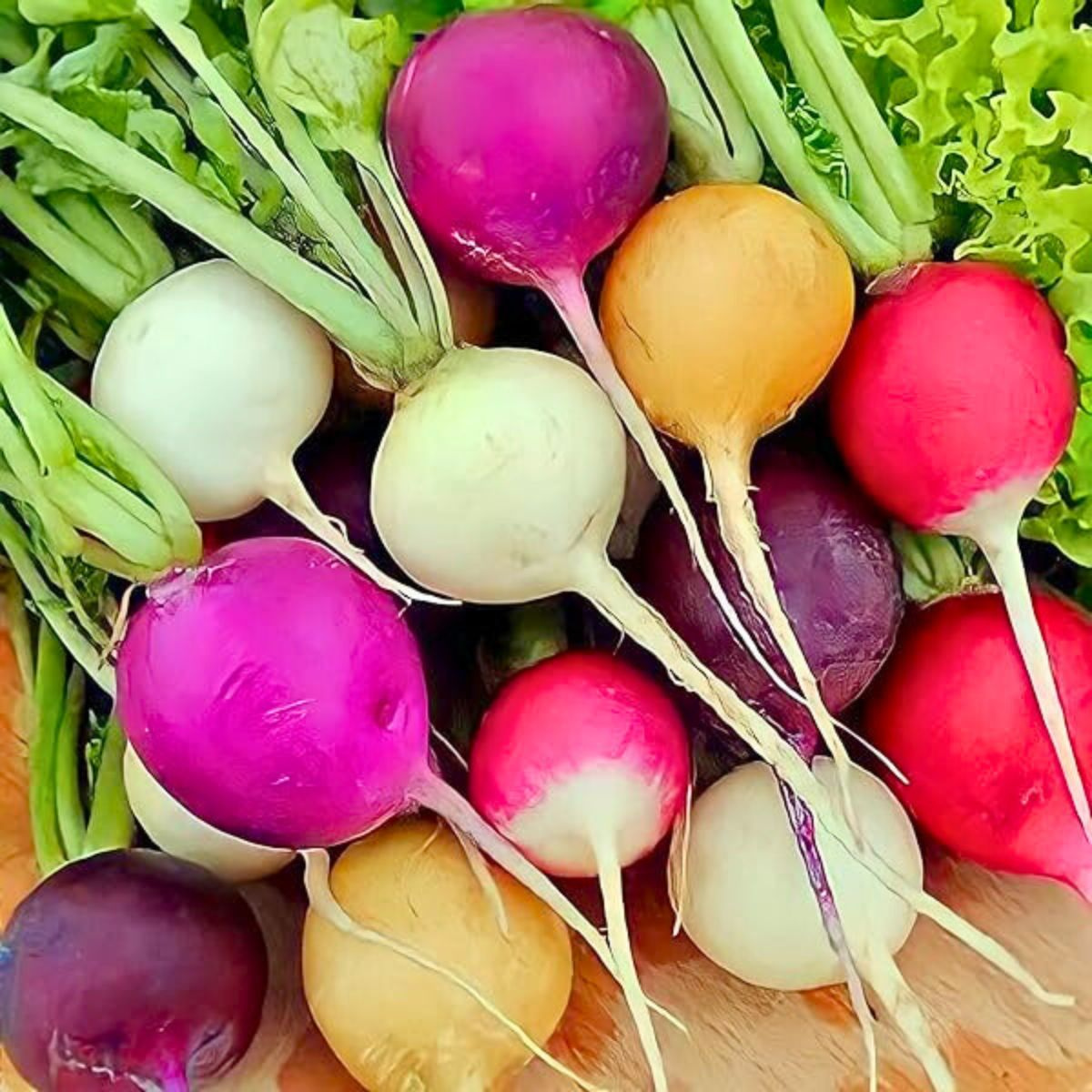 Mieszanka czterech odmian rzodkiewki o kulistych zgrubieniach. W jej skład wchodzą odmiany o skórce białej, fioletowej, karminowej i żółtej. Są zróżnicowane również pod względem smaku miąższu. Doskonale nadają się do kolorystycznego i smakowego wzbogacania potraw. Siew nasion do gruntu wczesną wiosną. Dla uzyskania ciągłościzbiorów powtarzać siew, co 2 tygodnie do końca V. Na jesienny zbiór - siew w VIII. Gramatura: 5g.