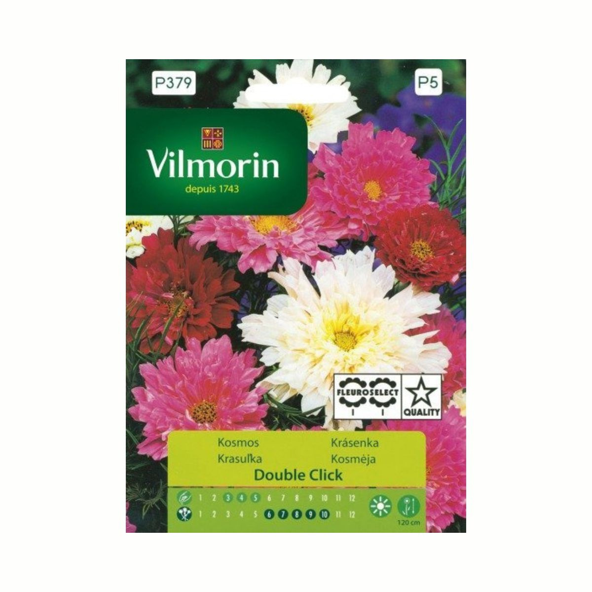 Kosmos Double Click – roślina jednoroczna, dorastająca do 120 cm. Kwiaty bardzo dekoracyjne, pełne lub półpełne w kolorze białym, różowym, purpurowym, karminowym, rosną pojedynczo na cienkich łodygach. Kwitnie od czerwca do października.