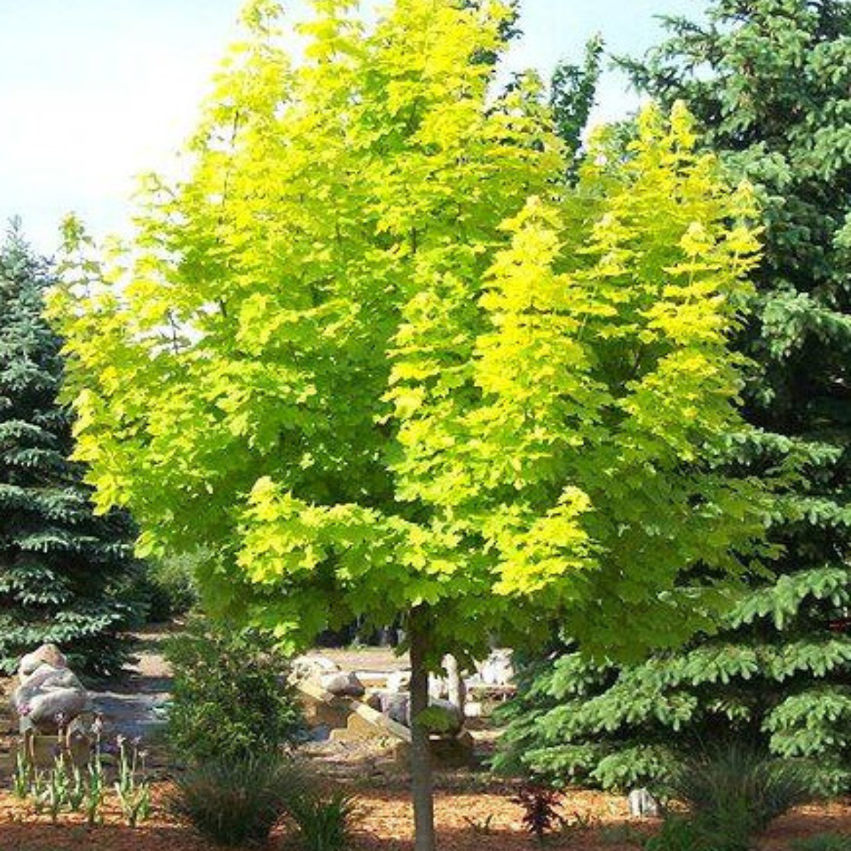 Priceton Gold to odmiana o regularnej, szerokiej koronie i złotożółtych liściach. Ładnie komponujące się w krajobrazie z roślinami o ciemniejszych liściach.