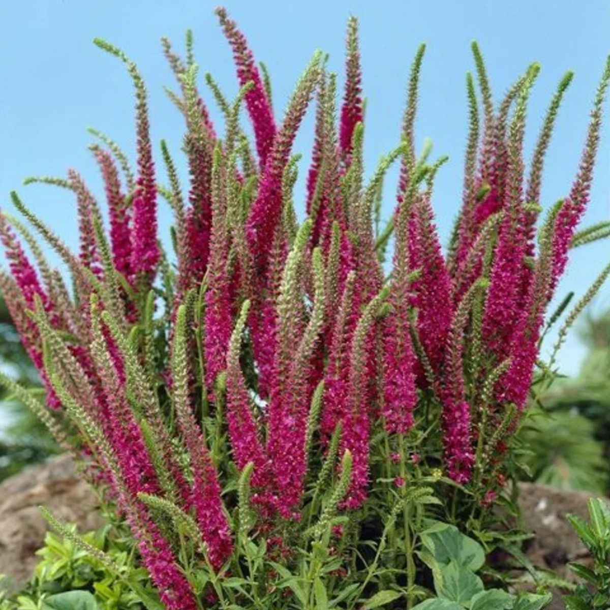 Przetacznik kłosowy Rotfuchs Red Fox to urokliwa bylina, która wyróżnia się niezwykłymi, ciemno różowoczerwonymi kwiatami zebranymi w kłosowate grona. Dorasta do 40 cm wysokości, tworząc luźną darń dzięki pokładającym się pędom, które zakorzeniają się w ziemi. Dzięki swoim niewielkim wymaganiom uprawowym jest idealną rośliną do ogrodów, rabat oraz pojemników. Jego kłosokształtne kwiatostany, pełne intensywnych kolorów, dodają ogrodowi niepowtarzalnego charakteru, a także przyciągają owady zapylające.