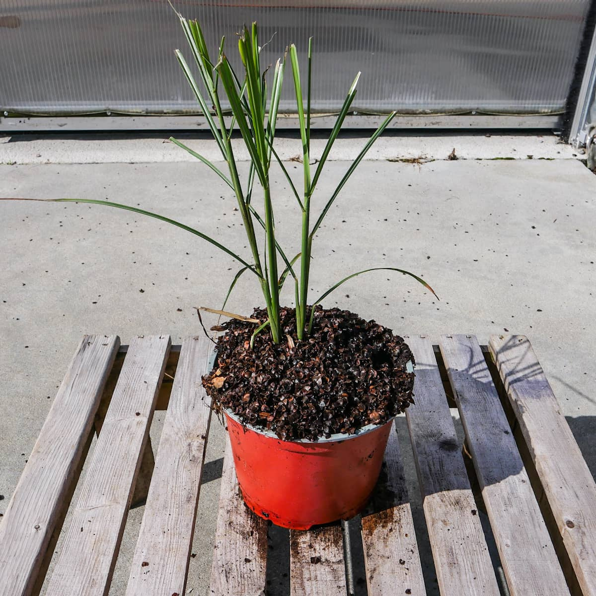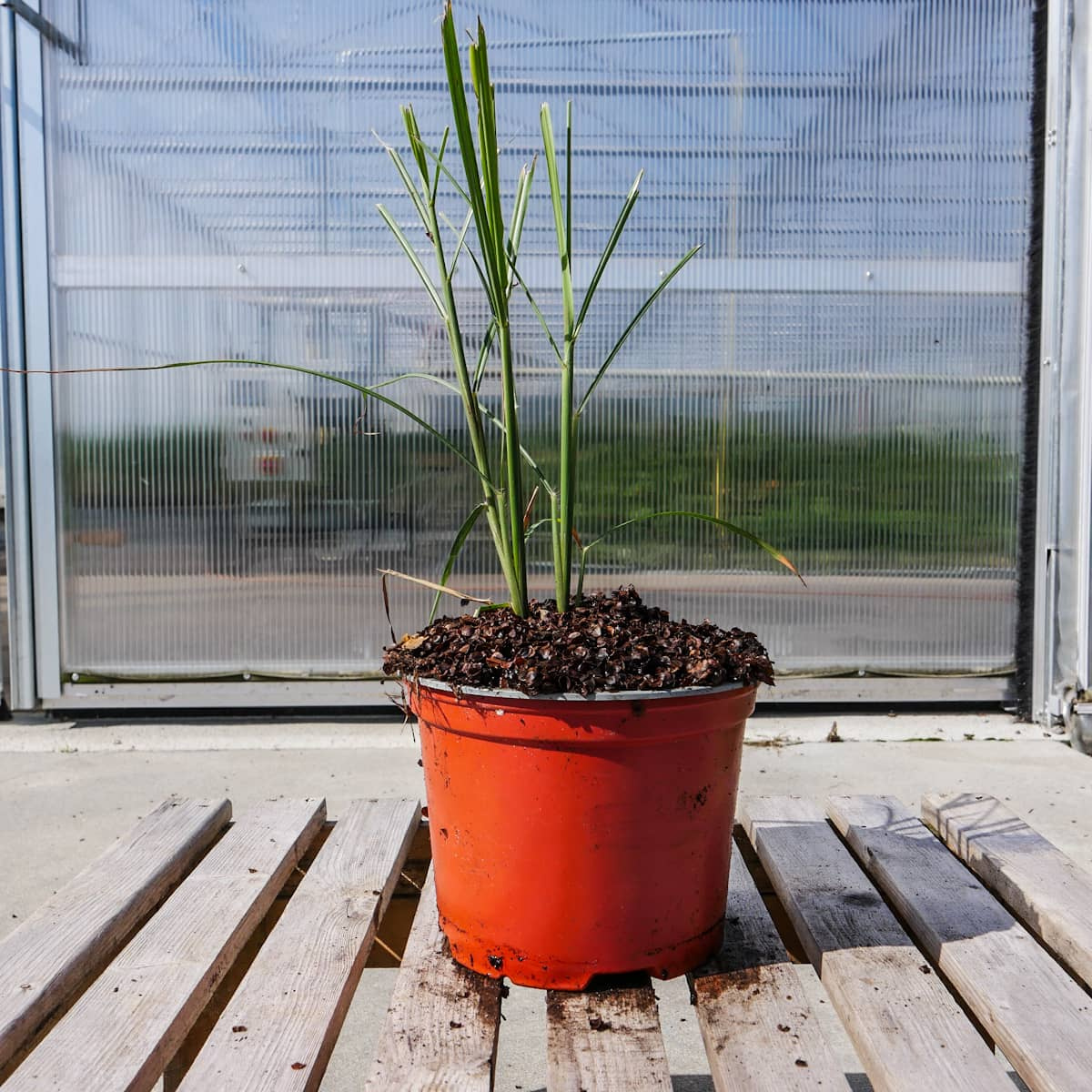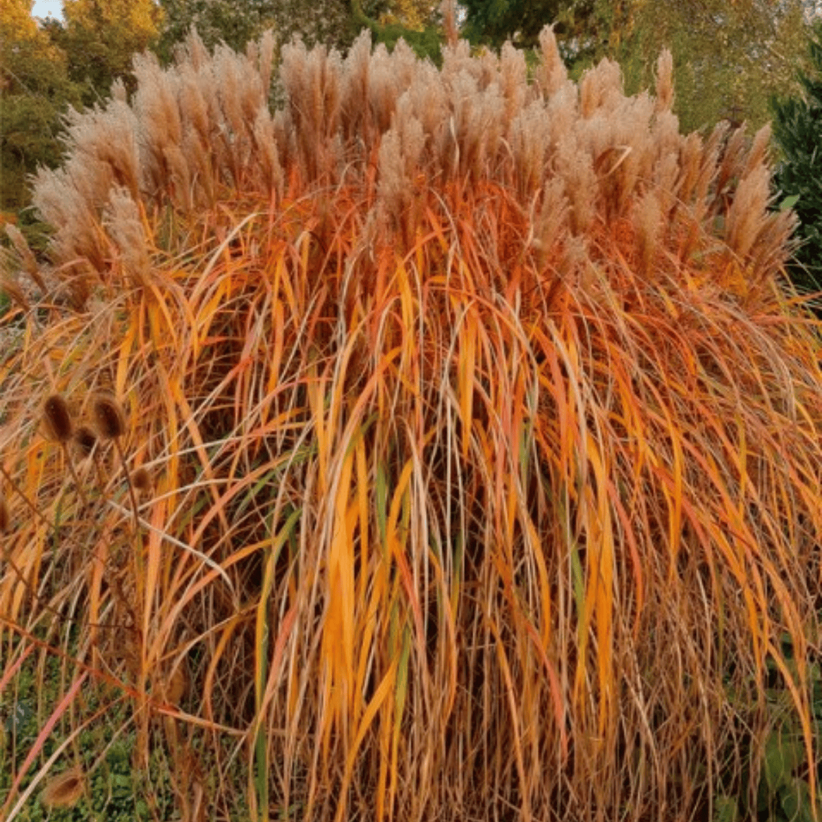Miskant chiński Malepartus to jedna z najcenniejszych odmian wysokich traw ozdobnych. Charakteryzuje się bujnym wzrostem, mocnym pokrojem i intensywnie wybarwionymi kwiatostanami, które stopniowo zmieniają barwę od krwistej czerwieni po srebrzyste, puszyste wiechy. Roślina dorasta do 180 cm, a w okresie kwitnienia osiąga nawet 220 cm wysokości. Ozdobne liście mają szeroką blaszkę z wyraźnym białym paskiem biegnącym przez środek, co sprawia, że miskant ten jest dekoracyjny przez cały sezon. Jesienią ulistnienie przebarwia się na odcienie miedzi, złota i bursztynu, dodając ogrodowi ciepłych, jesiennych barw. Sprawdź także inne trawy ozdobne, które idealnie dopełnią kompozycję ogrodową.