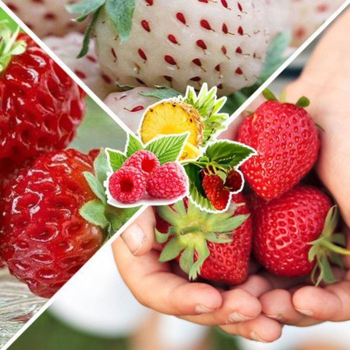 - Truskawka ananasowa: Biała truskawka z czerwonymi pestkami, uwielbiana przez dzieci za słodki smak przypominający ananasa. Jej nietuzinkowy wygląd sprawia, że zachwyca zarówno dorosłych, jak i najmłodszych. (Kpl. 10 szt.)