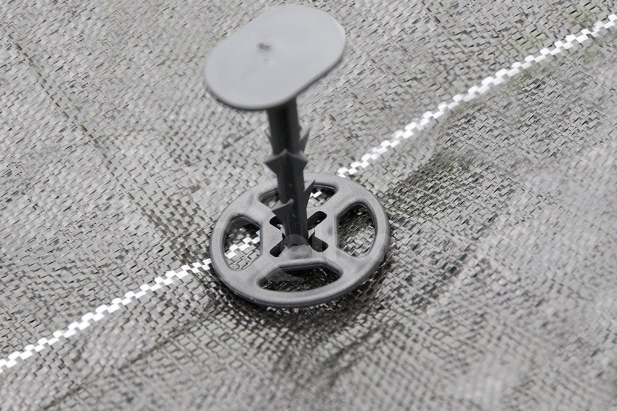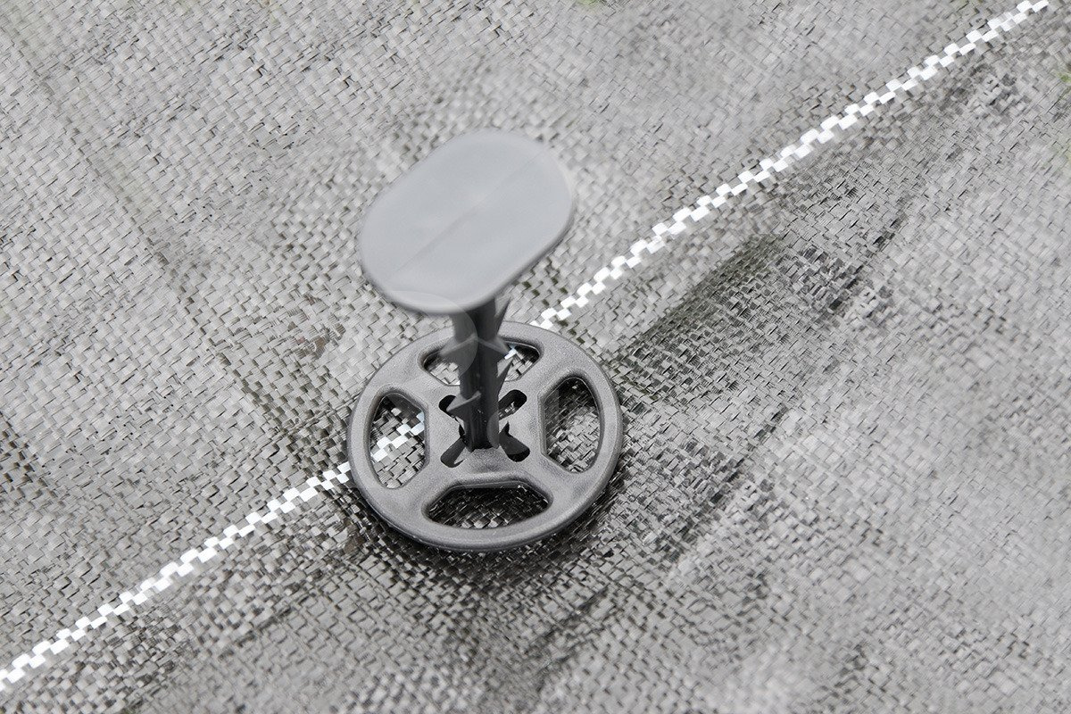 Dzięki podkładkom zwiększamy powierzchnię mocowania, sprawiając że agrowłókniny, agrotkaniny i siatki nie przesuwają się.