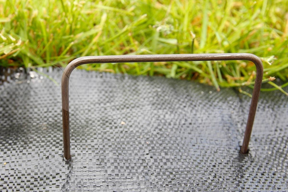 Duże wymiary szpilki ( 15 cm długość ) gwarantują stabilne przytrzymanie włóknin i tkanin przy ziemi.