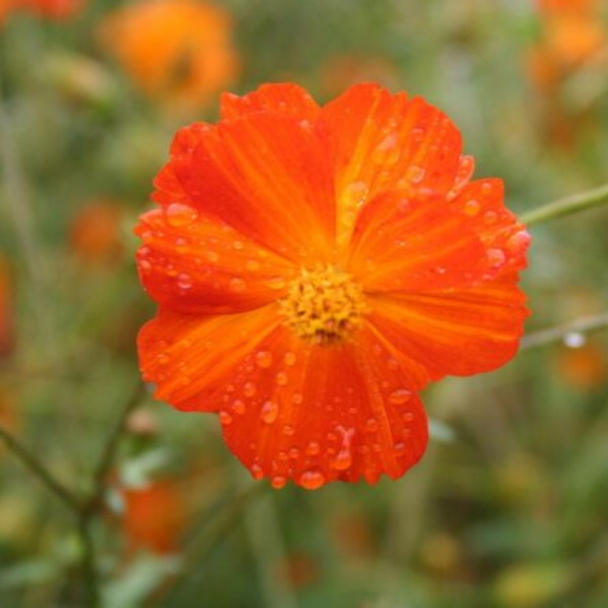 Kosmos Diablo, znany też jako onętek Diablo, jest odmianą o soczyście pomarańczowych kwiatach.