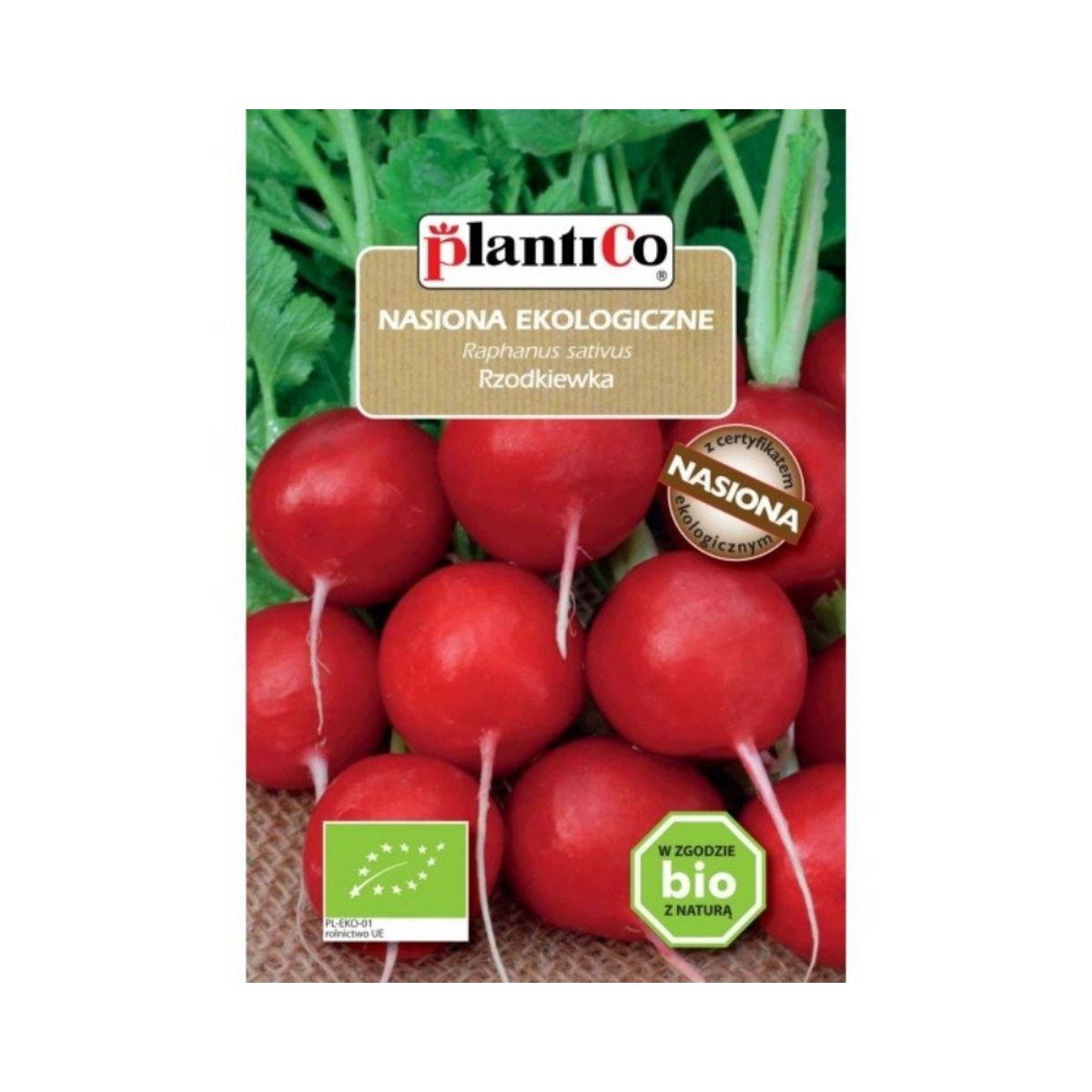 Rzodkiewka jest źródłem witaminy C (100 g rzodkiewek dostarcza 20,6 mg witaminy), B1, B2 i PP oraz składników mineralnych jak żelazo, wapń, siarka, magnez, miedź i mangan. Charakterystyczny smak rzodkiewce nadają olejki gorczyczne, zawierające siarkę (wpływają na układ trawienny i zwiększają apetyt). Zgrubienie kuliste o czerwonej skórce. Polecana do uprawy w gruncie lub tunelu. Zalecany siew punktowy w rozstawie 10 x 2,5 cm. Gatunek wymaga uprawy w warunkach krótkiego dnia (wiosna, jesień), gdyż zarówno długi dzień jak i wysoka temperatura maja wpływ na tworzenie pędów nasiennych i parcenie korzeni. Nasiona ekologiczne wyprodukowane w oparciu o naturalne metody uprawy bez użycia chemicznych środków ochrony roślin, nawozów sztucznych.