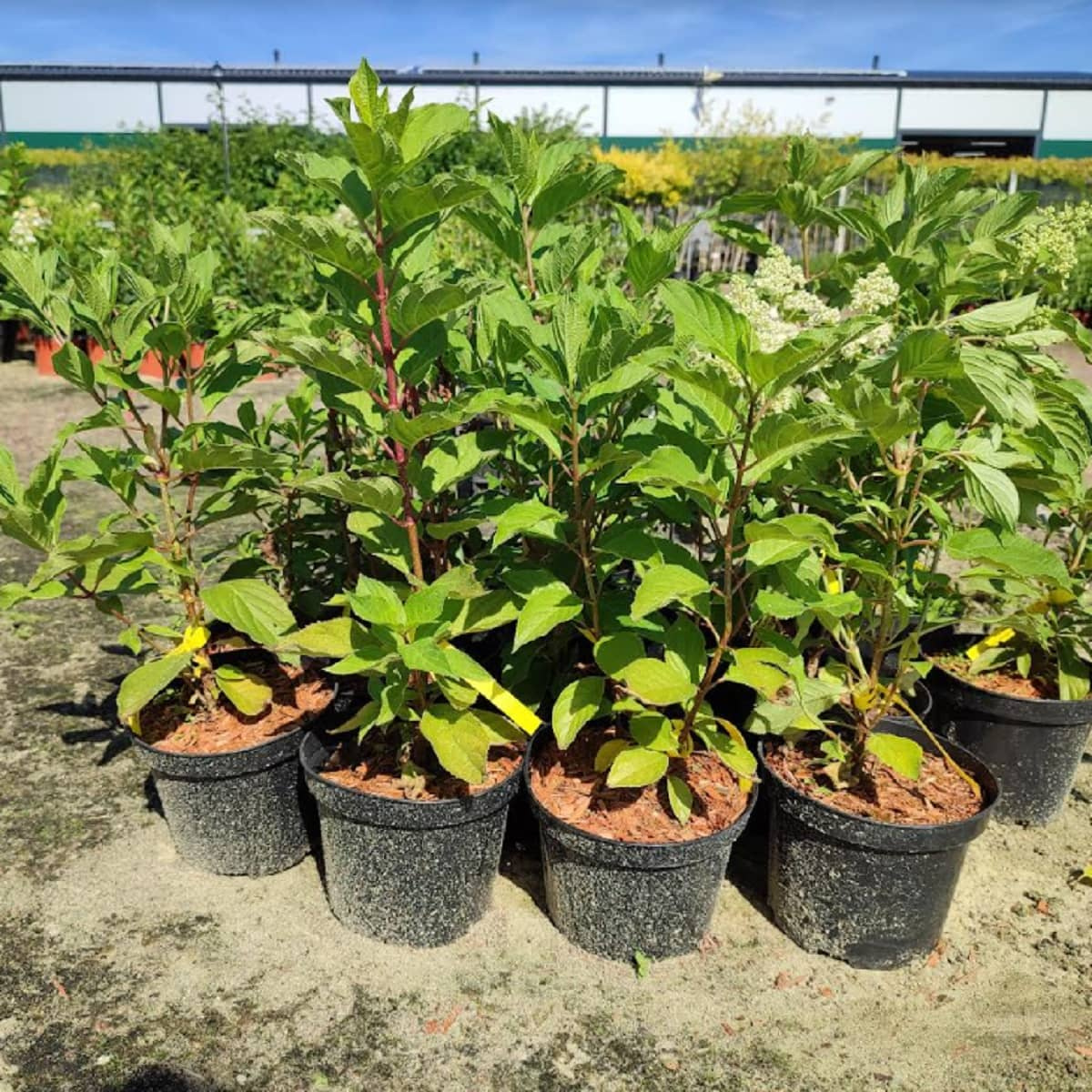 Hortensja bukietowa Great Star (Hydrangea paniculata 'Great Star') to niezwykle dekoracyjna odmiana o unikalnym charakterze. Jej największym atutem są duże, luźne kwiatostany złożone z śnieżnobiałych kwiatów o wyjątkowym, gwiazdkowatym kształcie płatków. Kwiaty są nie tylko efektowne wizualnie, ale również delikatnie pachnące, co sprawia, że roślina przyciąga nie tylko wzrok, ale i zmysł węchu. Kwitnienie przypada na okres od lipca do września, a w sprzyjających warunkach może trwać aż do pierwszych przymrozków. Great Star to krzew o wyprostowanym, krzaczastym pokroju, osiągający docelową wysokość od 1,5 do 2 metrów. Rośnie umiarkowanie szybko, z każdym rokiem zyskując na sile i dekoracyjności. Dzięki swojej strukturze i lekkiemu wyglądowi sadzonki krzewów liścistych świetnie prezentują się jako soliter, ale równie dobrze komponuje się w grupie z innymi gatunkami.