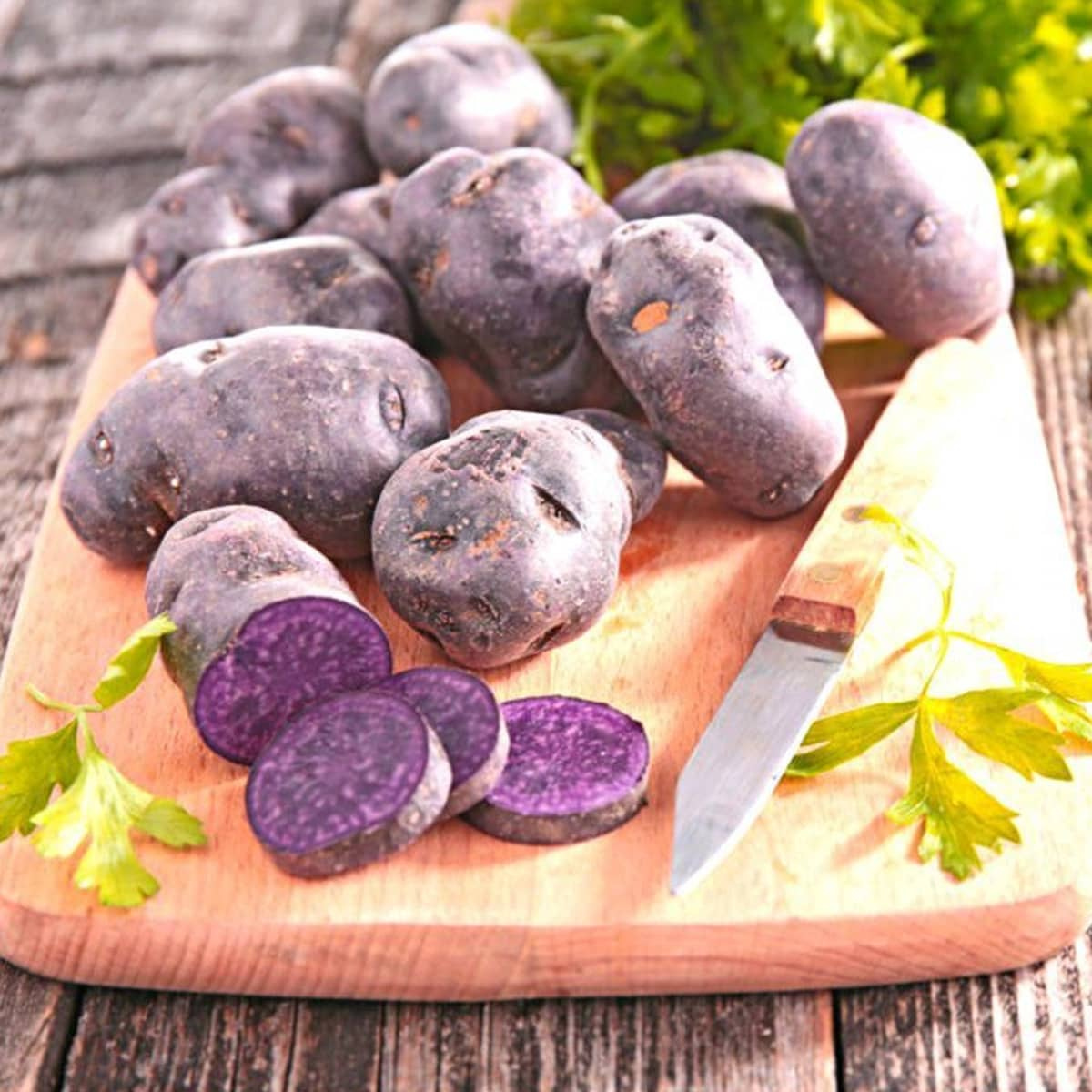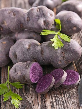 Niezwykła odmiana ziemniaka od fioletowej barwie skórki i miąższu, którego nie traci nawet po ugotowaniu. Barwę swą ta odmiana zawdzięcza zwiększonej zawartości antocyjanów - substancji wpływających pro zdrowotnie na organizm człowieka.