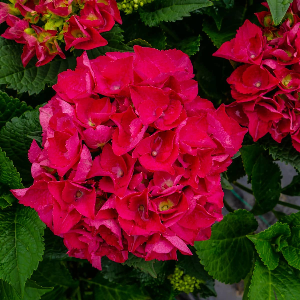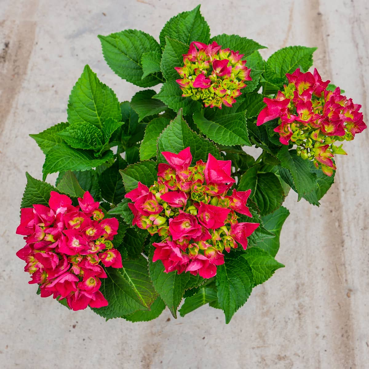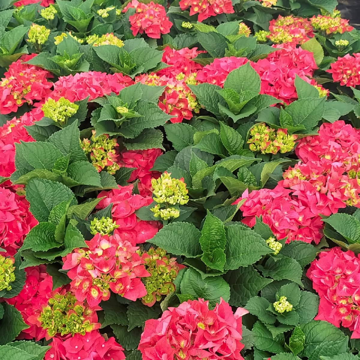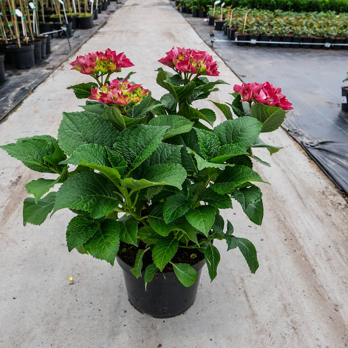 Czerwone kwiaty hortensji ogrodowej Hot Red to prawdziwa ozdoba letniego ogrodu – intensywne, nasycone, przyciągające wzrok od pierwszych dni czerwca aż do września. Zebrane w duże, kuliste kwiatostany, pięknie kontrastują z ciemnozielonymi liśćmi, tworząc elegancki i wyrazisty akcent w półcienistych rabatach, donicach czy przy ogrodowych ścieżkach. Długo utrzymują swoją formę i kolor, a przy lekko kwaśnym pH gleby prezentują najgłębszy, karminowoczerwony odcień. Kwitnienie jest obfite, równomierne i trwałe – roślina przez całe lato wygląda świeżo i dekoracyjnie, wprowadzając do ogrodu żywą, energetyczną barwę. Sadzonki hortensji Hot Red doskonale sprawdzają się w mniejszych przestrzeniach, a w zestawieniu z innymi sadonkami krzewów liściastych tworzą kompozycje, które zmieniają się wraz z porami roku, ale zawsze pozostają efektowne i pełne uroku.