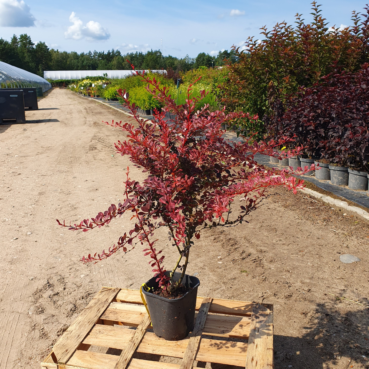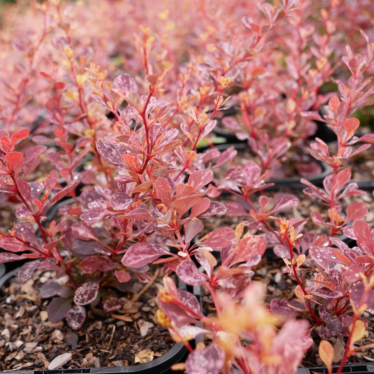 Berberys Thunberga Rose Glow to jedna z najefektowniejszych odmian berberysów liściastych, ceniona zarówno przez profesjonalnych projektantów zieleni, jak i ogrodników-amatorów. Krzew charakteryzuje się rozłożystym pokrojem, a jego największym atutem są purpurowe liście z nieregularnymi różowymi przebarwieniami. Młode liście często mają wyraźne plamki w odcieniach srebrzystego różu, które tworzą na krzewie wyrazisty, niemal marmurkowy efekt. Odmiana rośnie umiarkowanie szybko i dorasta zwykle do 120–150 cm wysokości oraz około 100 cm szerokości. Dzięki tym proporcjom Rose Glow świetnie sprawdza się jako wyrazisty akcent barwny w ogrodzie lub element niskiego żywopłotu. To sadzonki berberysu o ponadczasowej urodzie.