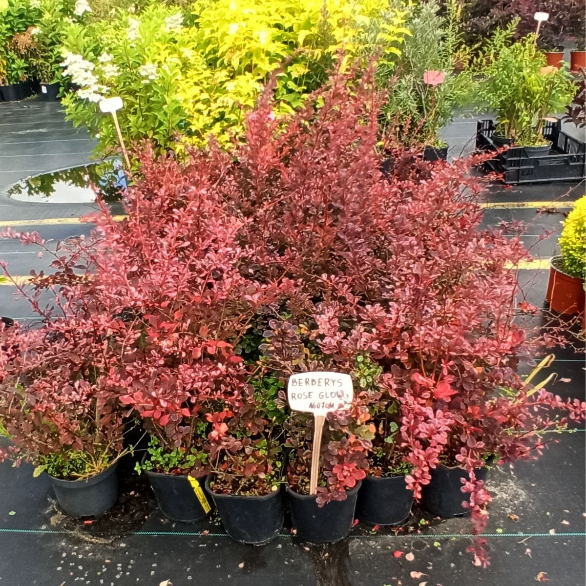 Berberys Thunberga Rose Glow to krzew o szerokim zastosowaniu w ogrodach przydomowych, miejskich oraz w zieleni publicznej. Może być wykorzystywany jako element niskich żywopłotów, kolorowych obwódek, nasadzeń grupowych i soliterowych, a także w zestawieniach z trawami ozdobnymi i iglakami. Dzięki regularnej formie nie wymaga regularnego cięcia, choć lekkie przycinanie po zimie sprzyja zagęszczaniu. Roślina świetnie znosi suszę, nie wymaga skomplikowanej pielęgnacji i przez cały sezon zachowuje silny efekt dekoracyjny. Jej pstrokate liście w odcieniach purpury i różu stanowią mocny, barwny akcent w każdej aranżacji.
