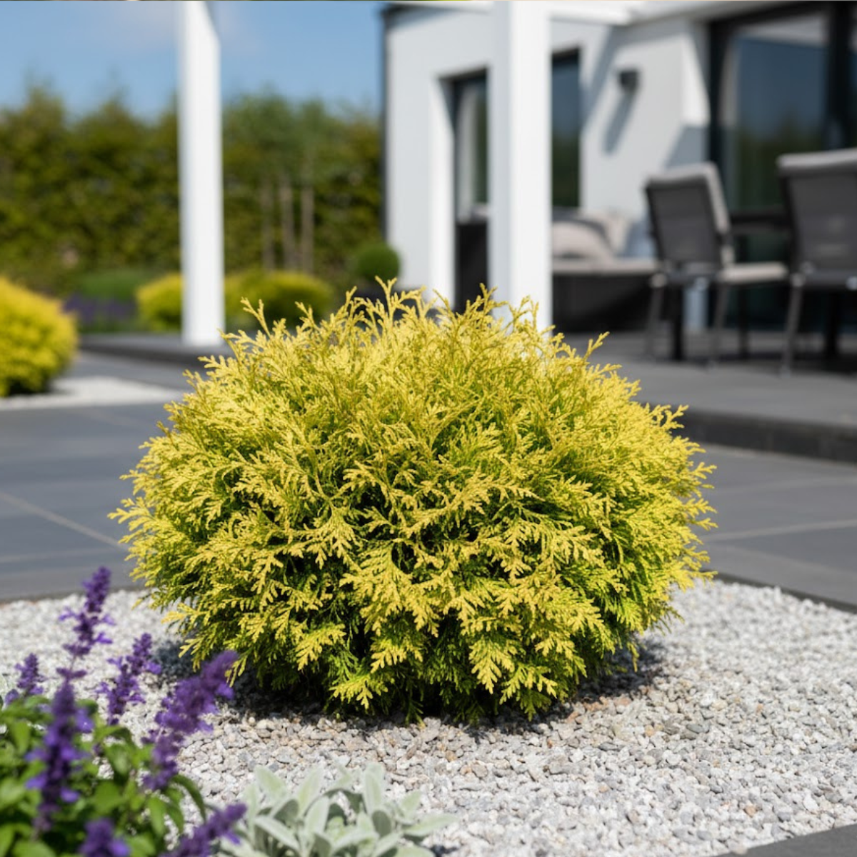 Thuja Tuja Żywotnik zachodni ‘Danica Aurea’ – złocista kula idealna do małych ogrodów