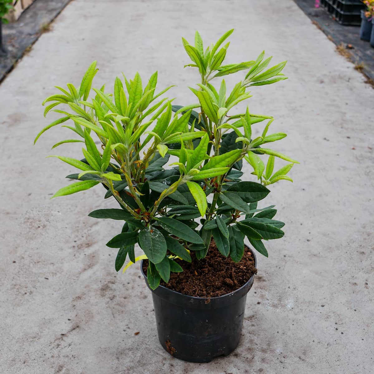 Rododendron Profesor Scholz (Rhododendron) to odmiana wyróżniająca się oryginalnym, intensywnie żółtym kolorem kwiatów, co jest stosunkowo rzadkie wśród różaneczników wielkokwiatowych. Krzew rośnie w umiarkowanym tempie, osiągając po kilku latach około 1,2–1,5 metra wysokości i podobną szerokość. Jego wzniesiony, zaokrąglony pokrój sprawia, że idealnie nadaje się zarówno do soliterowych nasadzeń, jak i do ogrodowych kompozycji z innymi odmianami. To propozycja dla osób poszukujących sadzonki rododendronu o nietypowym ubarwieniu.