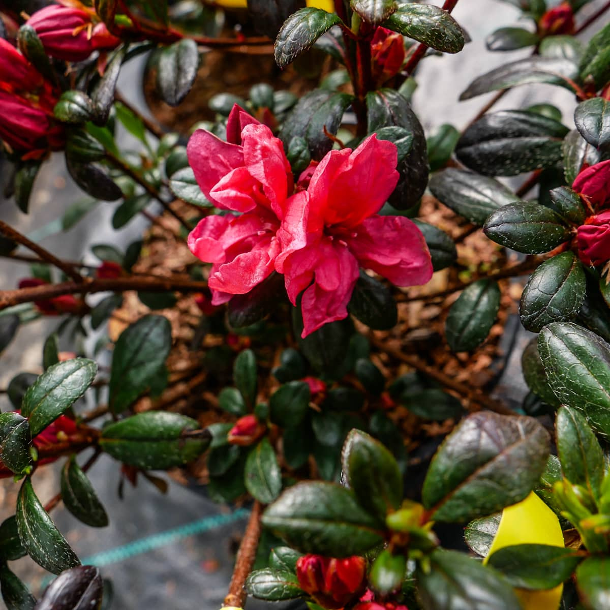 Azalia japońska to krzew zimozielony, o liściach eliptycznych, długości 2-5 cm, ciemnozielonych, błyszczących, kwiatach lejkowatych, o średnicy 5-6 cm. Przez krzyżowanie tego gatunku z innymi otrzymano wiele odmian ogrodowych o kwiatach pojedynczych lub pełnych, białych, różowych, łososiowych, liliowych, jasno- i ciemnoczerwonych. Azalie preferują stanowisko półcieniste, glebę przeciętną ogrodową, umiarkowanie wilgotną (w suche sezony należy je dodatkowo podlewać), o kwaśnym odczynie (pH 4,5-5,5), który sprawia, że wszystkie składniki pokarmowe są prawidłowo pobierane przez korzenie roślin. W bezśnieżne zimy także warto je podlewać, jak również warto je okrywać, szczególnie gdy stanowisko narażone jest na mroźne wiatry.