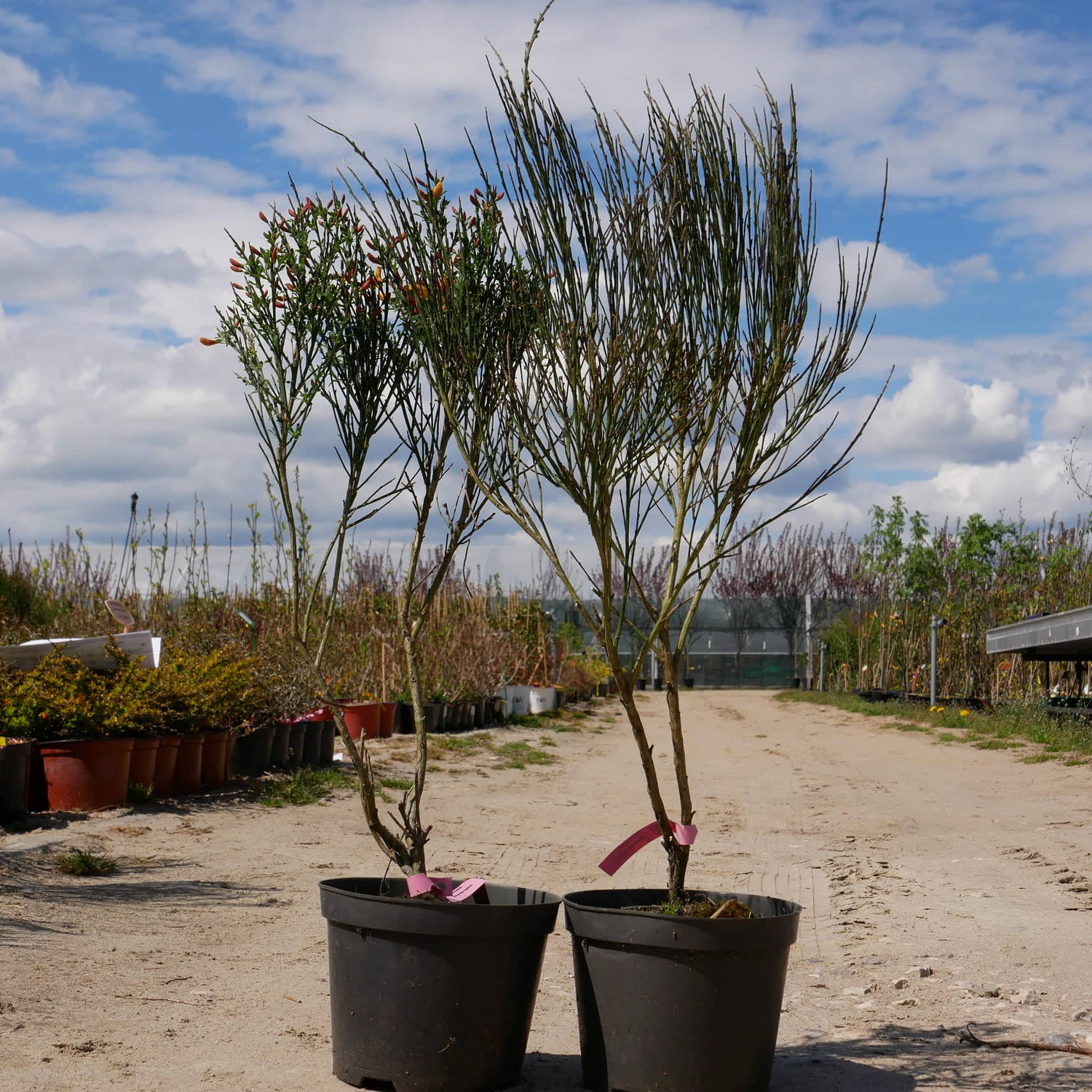Krzew ozdobny również po przekwitnięciu ze względu na ciemnozielone pędy. Liście nieduże, trójkalpowe.