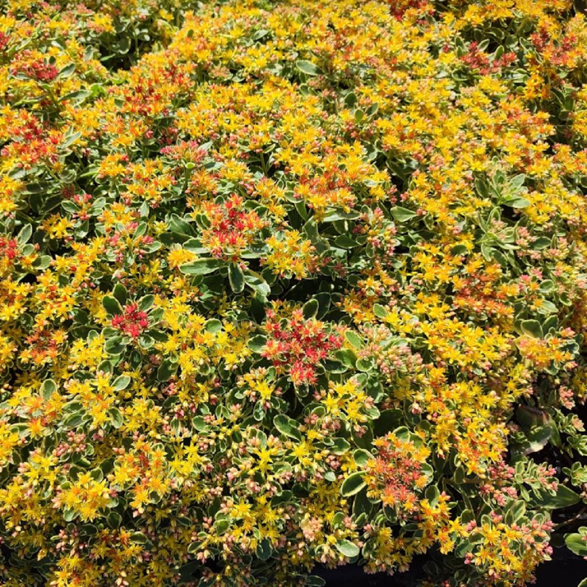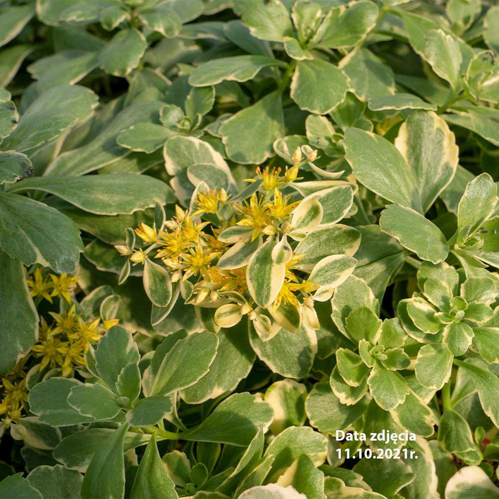Rozchodnik kamczacki 'Variegatum' to wieloletnia bylina o niezwykłej dekoracyjności, znana z barwnych, mięsistych liści oraz obfitego kwitnienia. Tworzy niskie, rozkrzewione kępy, dorastające do wysokości 15 cm, które idealnie sprawdzą się jako rośliny okrywowe. Zielone liście rośliny zdobione są kremowo-żółtym obrzeżeniem, a w okresie kwitnienia – od czerwca do lipca – bylinę zdobią intensywnie żółte, baldachowate kwiatostany. Po przekwitnięciu powstają efektowne pomarańczowe słupki, co sprawia, że rozchodnik 'Variegatum' jest ozdobny przez długi czas. Zimozielony charakter liści dodaje uroku również w okresie jesienno-zimowym.