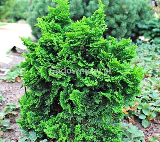 Cyprysik tępołuskowy Nana Gracilis (Chamaecyparis obtusa Nana Gracilis) to wyjątkowa, wolno rosnąca odmiana iglaka o niezwykle dekoracyjnym, zaokrąglonym pokroju. Tworzy gęste, nieregularne formy o błyszczących, ciemnozielonych łuskach, które pięknie kontrastują z jaśniejszymi końcówkami pędów. Karłowy wzrost sprawia, że jest idealnym wyborem do niewielkich ogrodów, skalniaków oraz donic tarasowych. Jego japońska estetyka świetnie wpisuje się w kompozycje w stylu zen i ogrody orientalne.