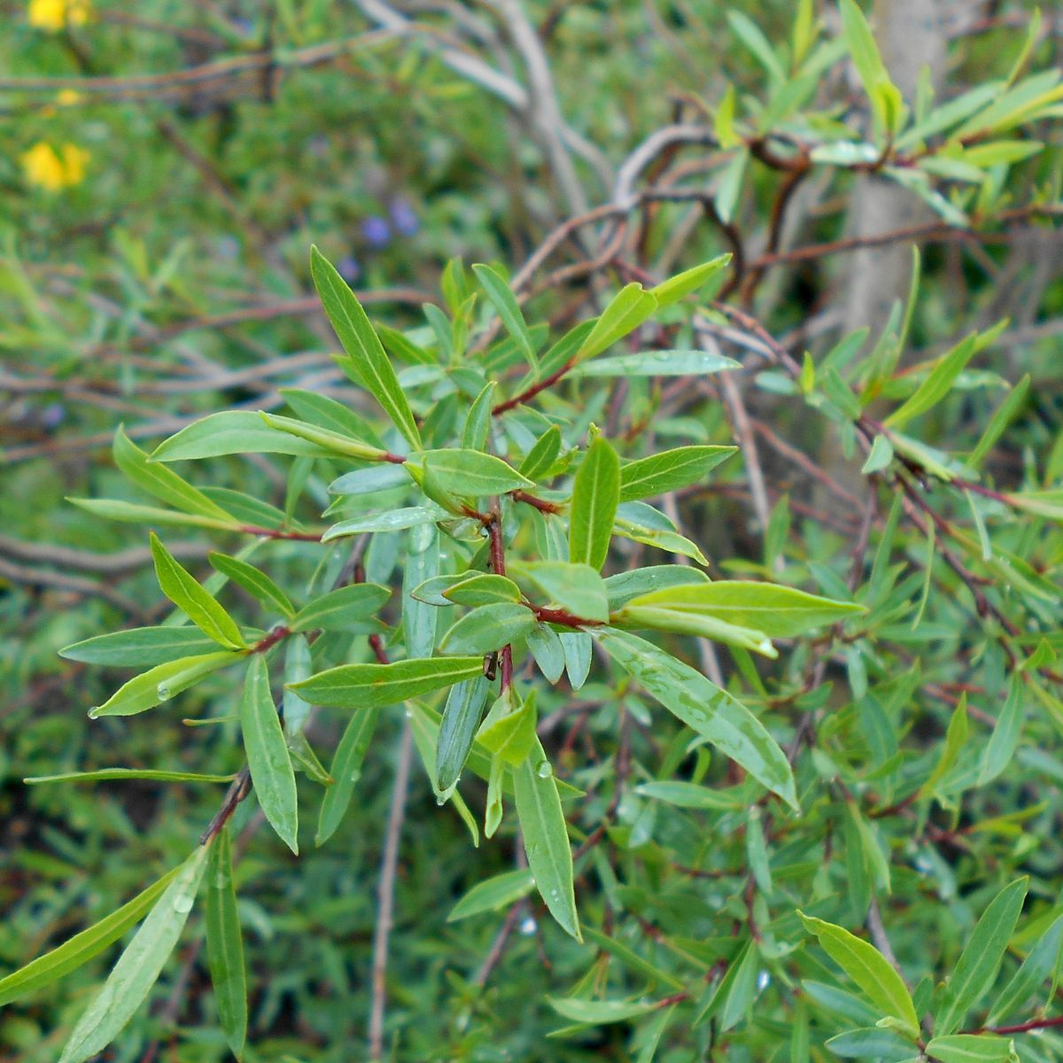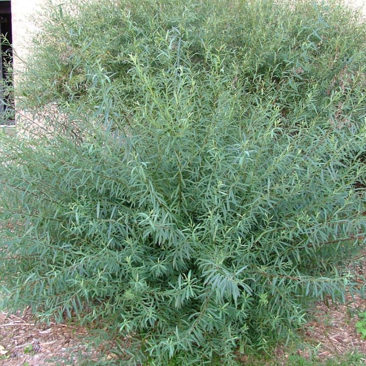 Krzew rosnący do 2 m wysokości. Liście 5-10 cm długości , odwrotnie lancetowate, niebieskawo-szare. Pędy, liczne, wzniesione od strony nasłonecznionej . Dobrze znosi cięcie co pozwala na jej formowanie.