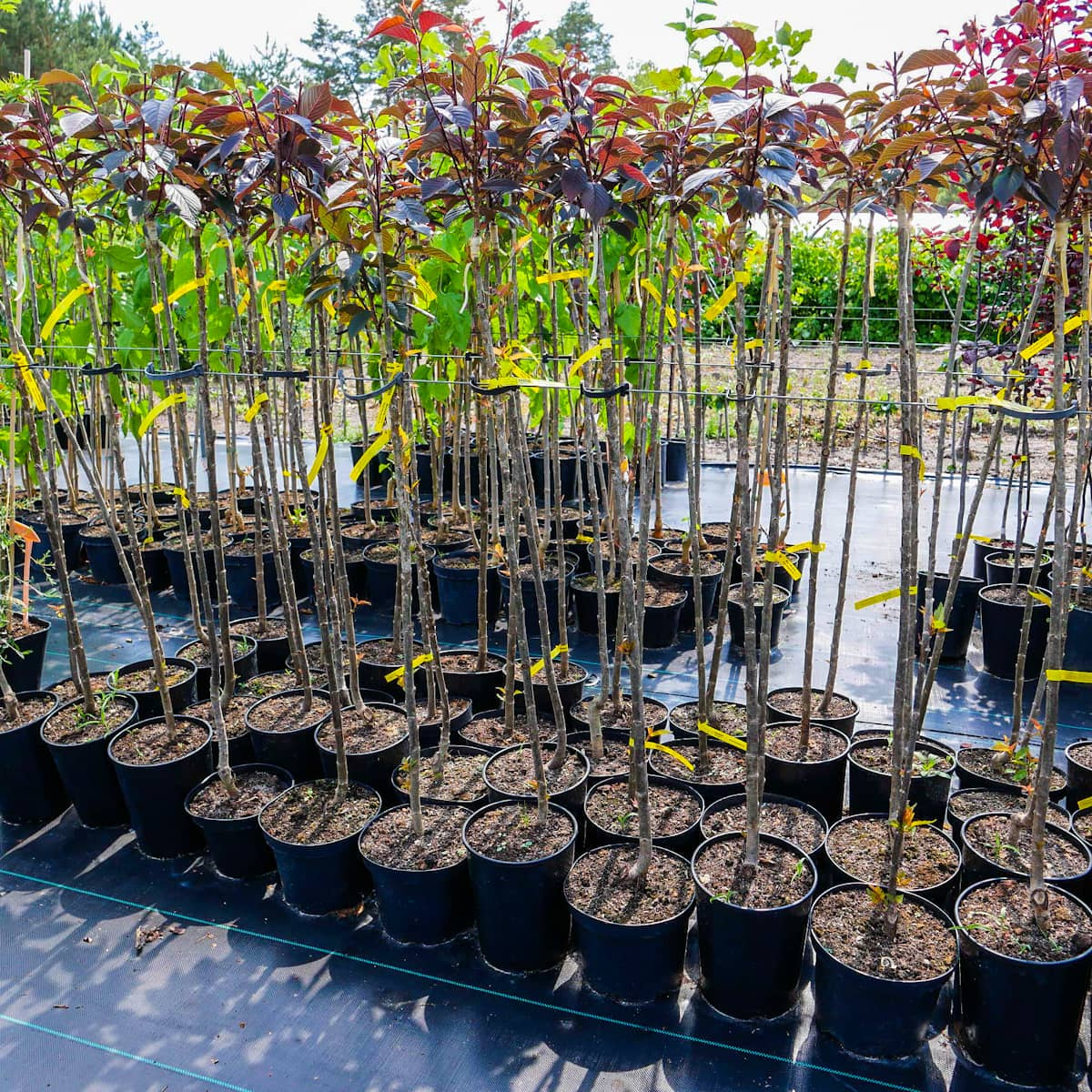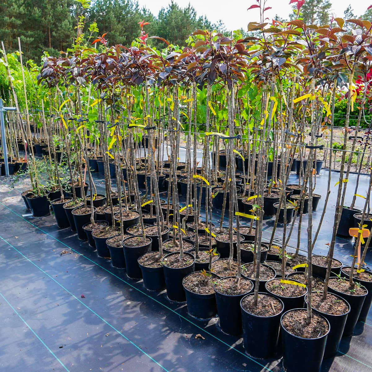 Liście zdobią drzewo swoim pięknym przez cały sezon, purpurowy kolorem.