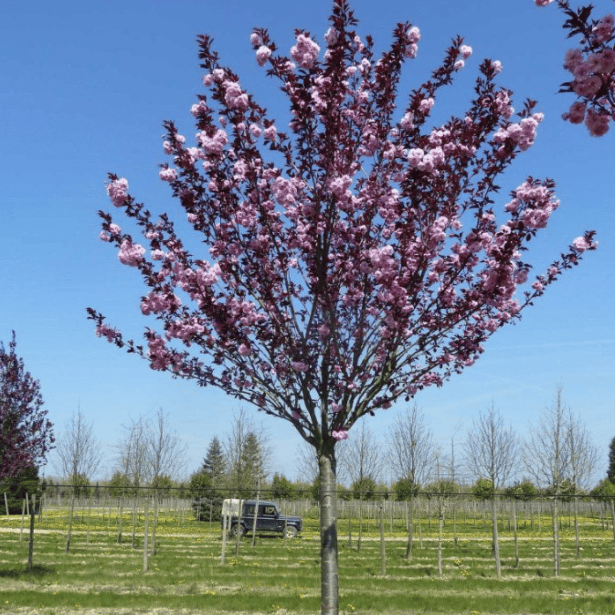 Wiśnia piłkowana 'Royal Burgundy', dorasta do 10m wysokości. W formie małego drzewka. Kwiaty liczne,, przypominające róże, pełne i różowe. Kwitnie w II połowie maja. Liście dekoracyjne cały sezon, purpurowe