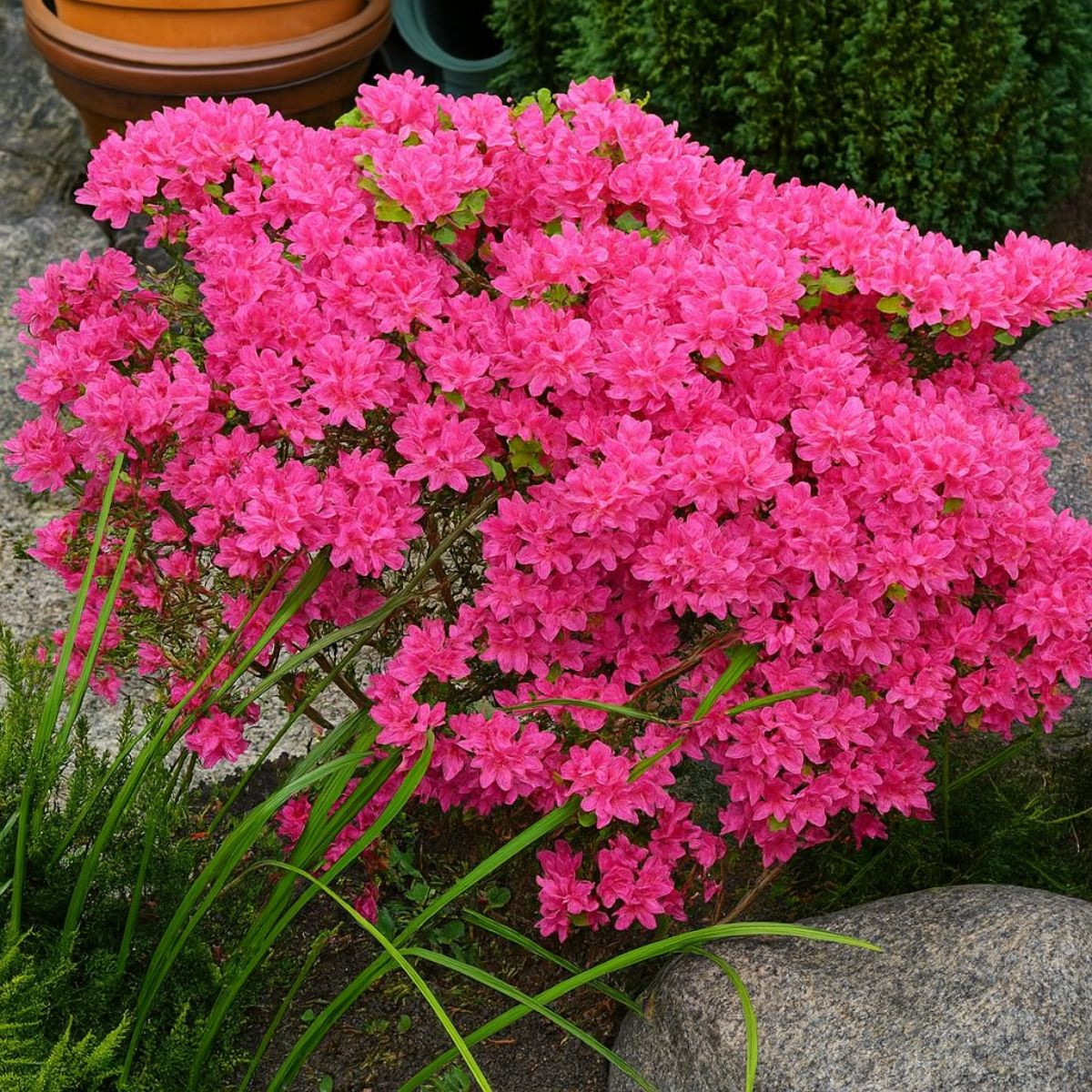 Azalia japońska Rubinetta to doskonały wybór do ogrodów przydomowych, skalniaków oraz kompozycji w stylu japońskim. Intensywnie czerwone kwiaty tworzą piękne zestawienia z roślinami wrzosowatymi, takimi jak wrzosy i wrzośce, dzięki czemu nasadzenia zyskują naturalny, harmonijny charakter.