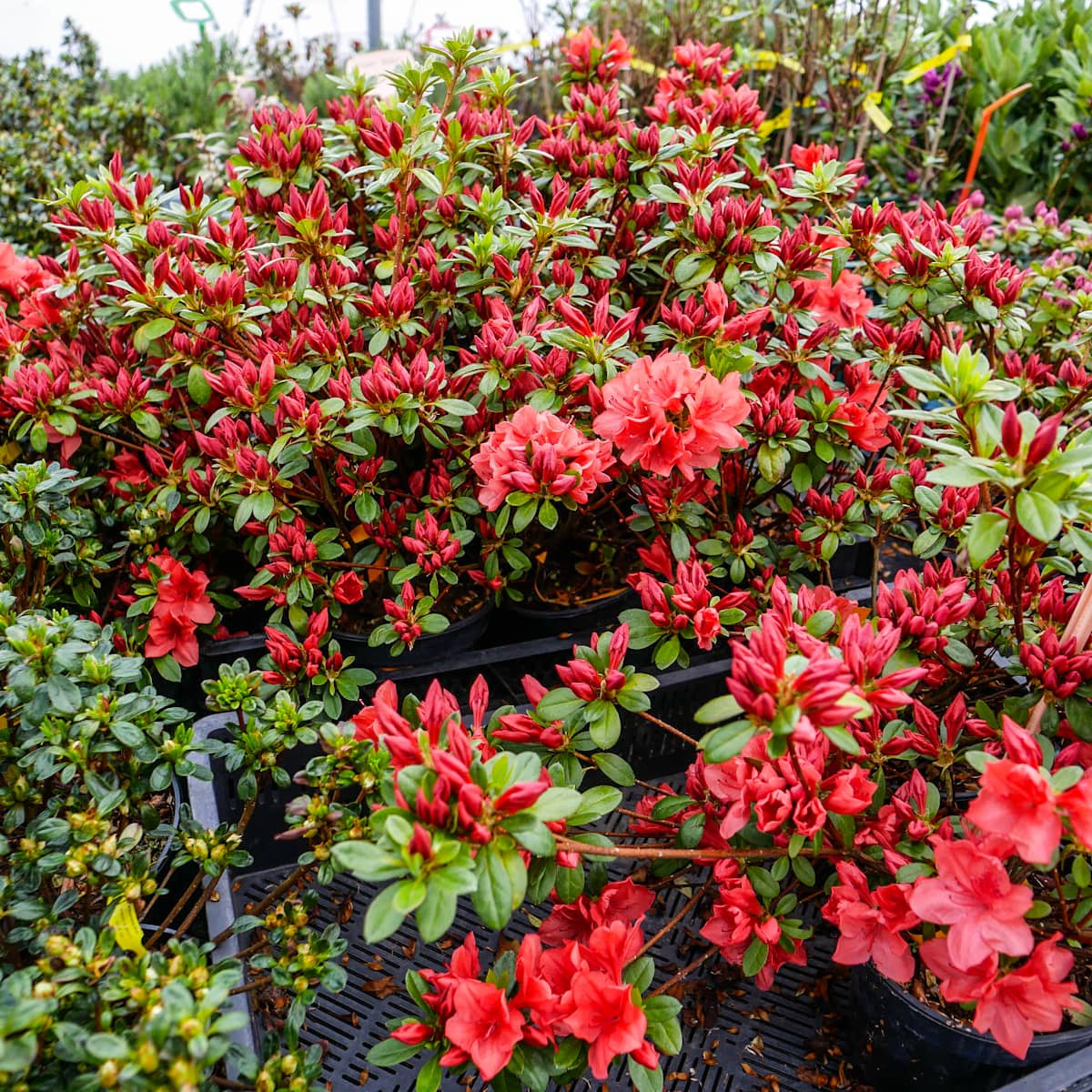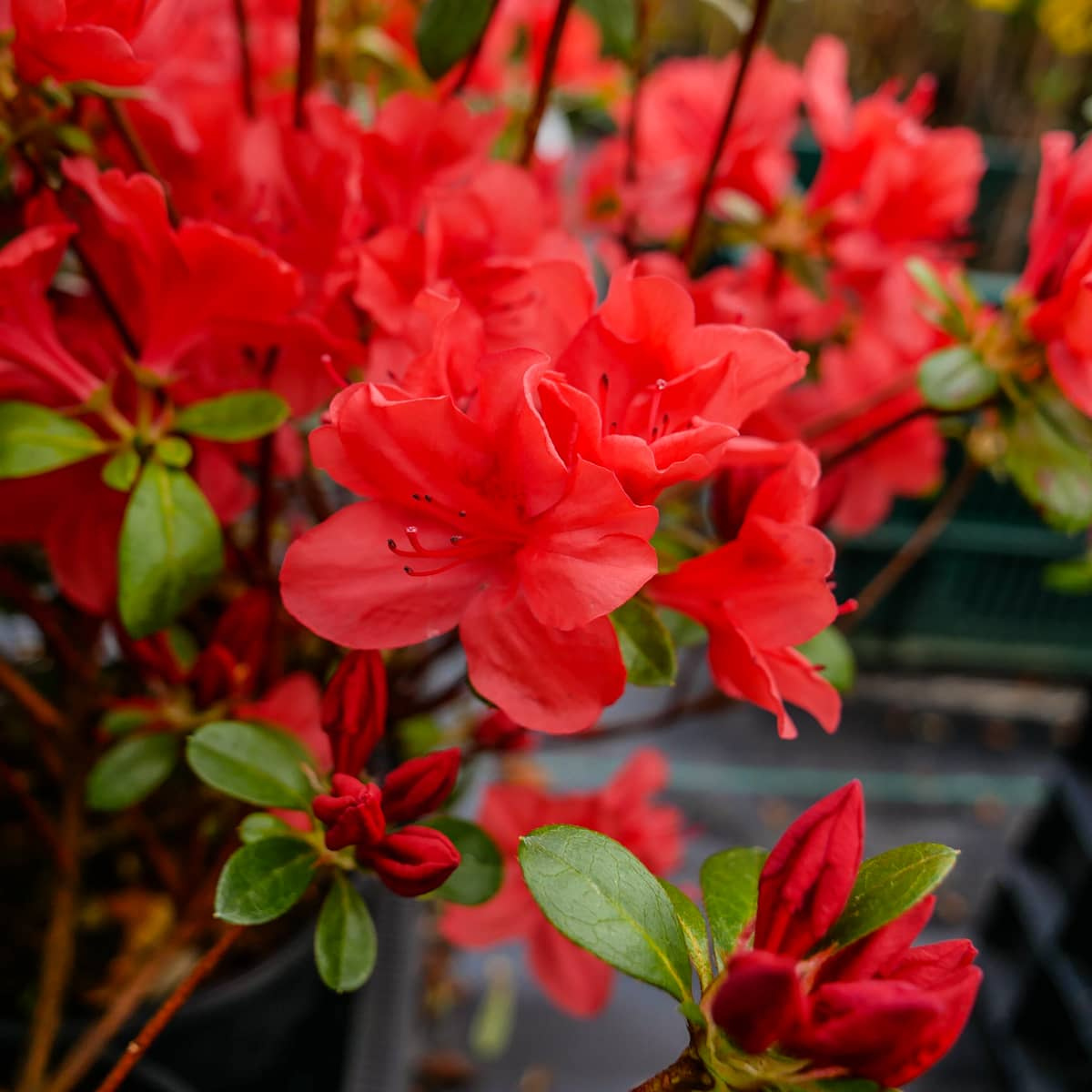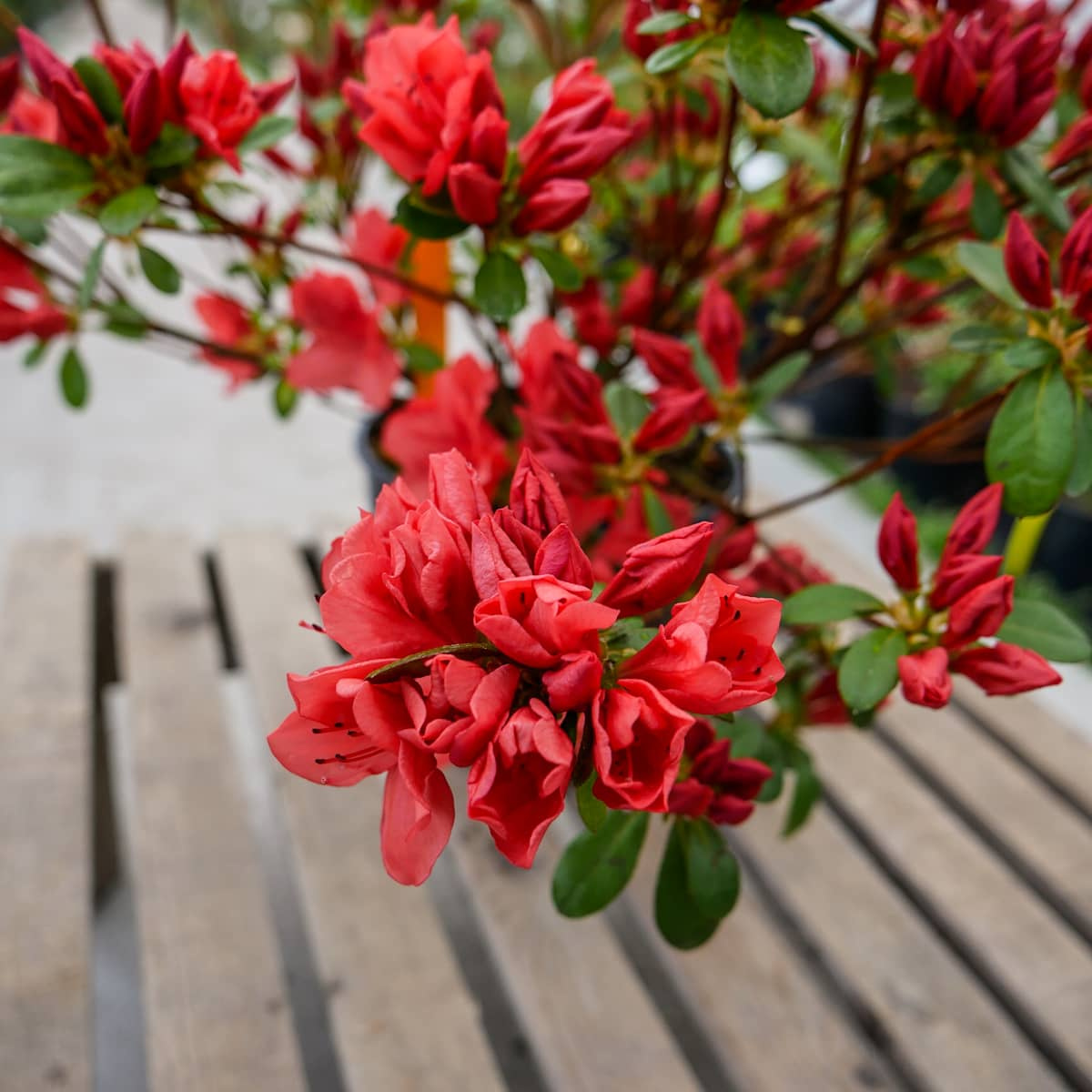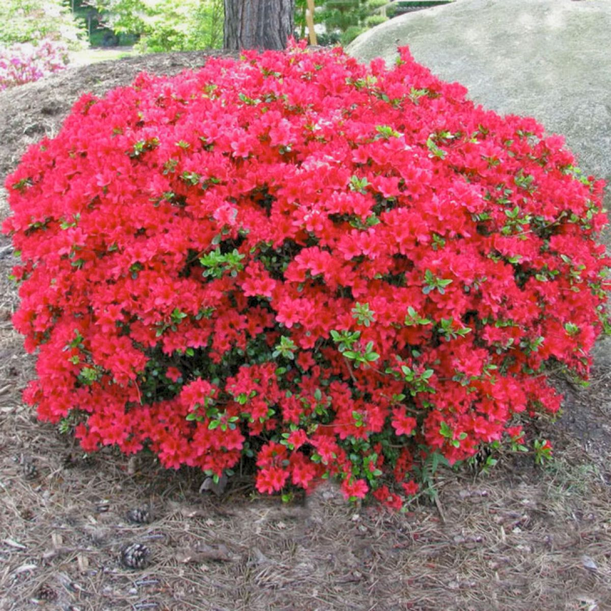 Azalia japońska to krzew zimozielony, o liściach eliptycznych, długości 2-5 cm, ciemnozielonych, błyszczących, kwiatach lejkowatych, o średnicy 5-6 cm. Przez krzyżowanie tego gatunku z innymi otrzymano wiele odmian ogrodowych o kwiatach pojedynczych lub pełnych, białych, różowych, łososiowych, liliowych, jasno- i ciemnoczerwonych. Azalie preferują stanowisko półcieniste, glebę przeciętną ogrodową, umiarkowanie wilgotną (w suche sezony należy je dodatkowo podlewać), o kwaśnym odczynie (pH 4,5-5,5), który sprawia, że wszystkie składniki pokarmowe są prawidłowo pobierane przez korzenie roślin. Z tego powodu azalie posadzone w ogrodzie powinny być regularnie zasilane specjalnym nawozem. W bezśnieżne zimy także warto je podlewać, jak również warto je okrywać, szczególnie gdy stanowisko narażone jest na mroźne wiatry.