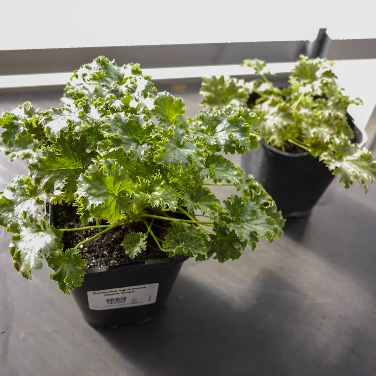 Żurawka Apple Crisp to niezwykle kompaktowa i fascynująca odmiana byliny z rodziny skalnicowatych. Tworzy zwarte kępki, osiągające wysokość 15-25 cm oraz średnicę 25-30 cm. Jej żywo zielone liście, zdobione srebrzystymi plamkami i mocno pofalowanymi brzegami, nadają roślinie wyjątkowego charakteru. Od maja do czerwca ponad liśćmi pojawiają się delikatne, białe kwiaty zebrane w ażurowe kwiatostany, które pięknie kontrastują z intensywną zielenią liści. Apple Crisp doskonale radzi sobie zarówno w cienistych, jak i bardziej nasłonecznionych miejscach, co czyni ją uniwersalnym dodatkiem do ogrodu. Zobacz więcej inspiracji w kategorii Sadzonki bylin.
