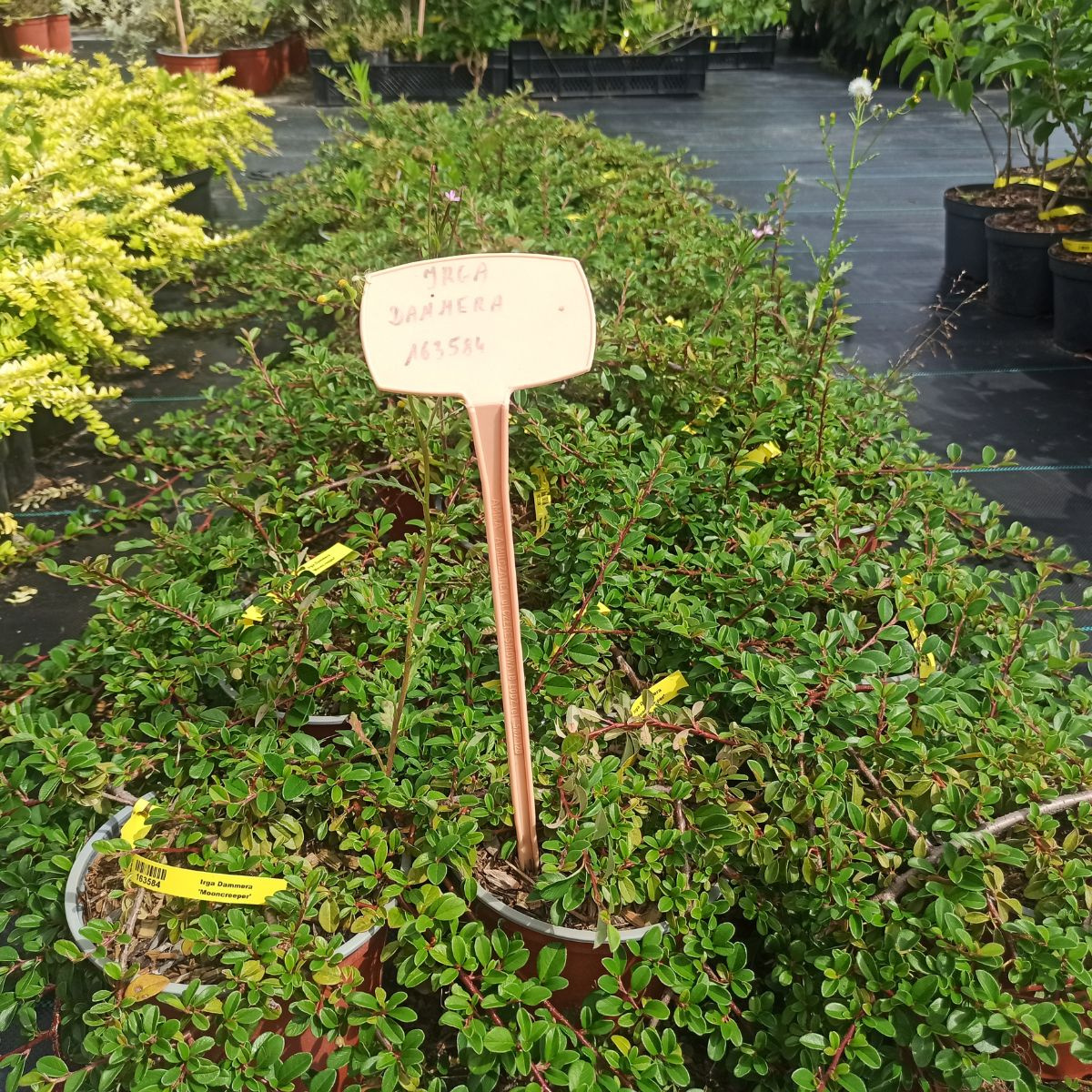 Irga Dammera Mooncreeper (Cotoneaster dammeri ‘Mooncreeper’) to wyjątkowa, miniaturowa odmiana o płożącym i zwartym pokroju. Jest to najniższa z dostępnych irg okrywowych – dorasta zaledwie do około 15–20 cm wysokości, rozrastając się szeroko na boki i tworząc gęste, dekoracyjne kobierce zieleni. Jej liście są ciemnozielone i błyszczące, co sprawia, że krzew prezentuje się elegancko przez cały rok. Sadzonki irgi Mooncreeper polecane są do ogrodów nowoczesnych i skalnych, gdzie świetnie podkreślają charakter nasadzeń. Sadzonki krzewów liściastych tej odmiany irgi, ze względu na swoje miniaturowe rozmiary, wyróżniają się na tle innych odmian i są ceniona za oryginalny wygląd.