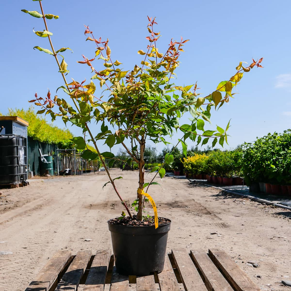 Ma charakterystyczne, jaskrawożółte liście, a najmłodsze, rozwijające się na końcach pędów - pomarańczowe, dzięki czemu będzie wspaniałym uzupełnieniem kontrastowych kompozycji kolorystycznych z innymi krzewami.