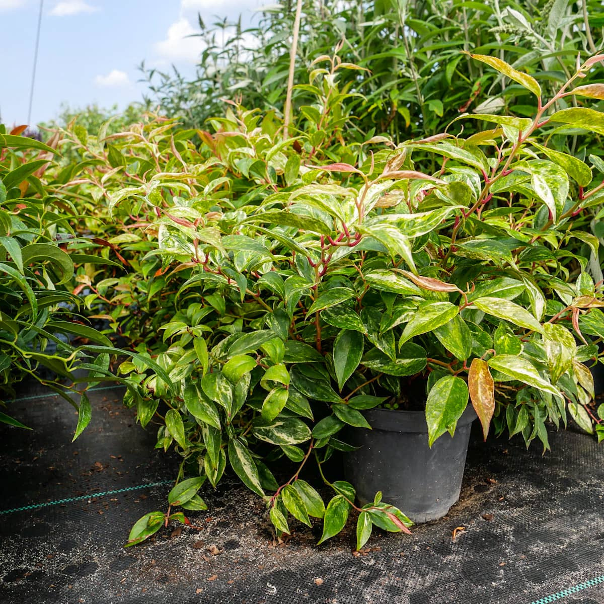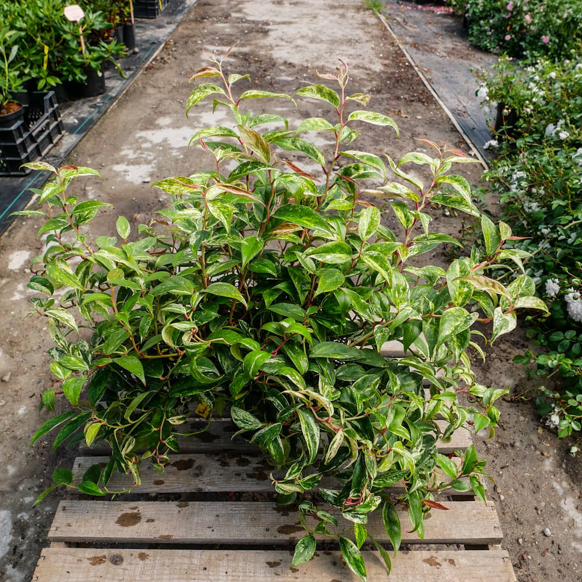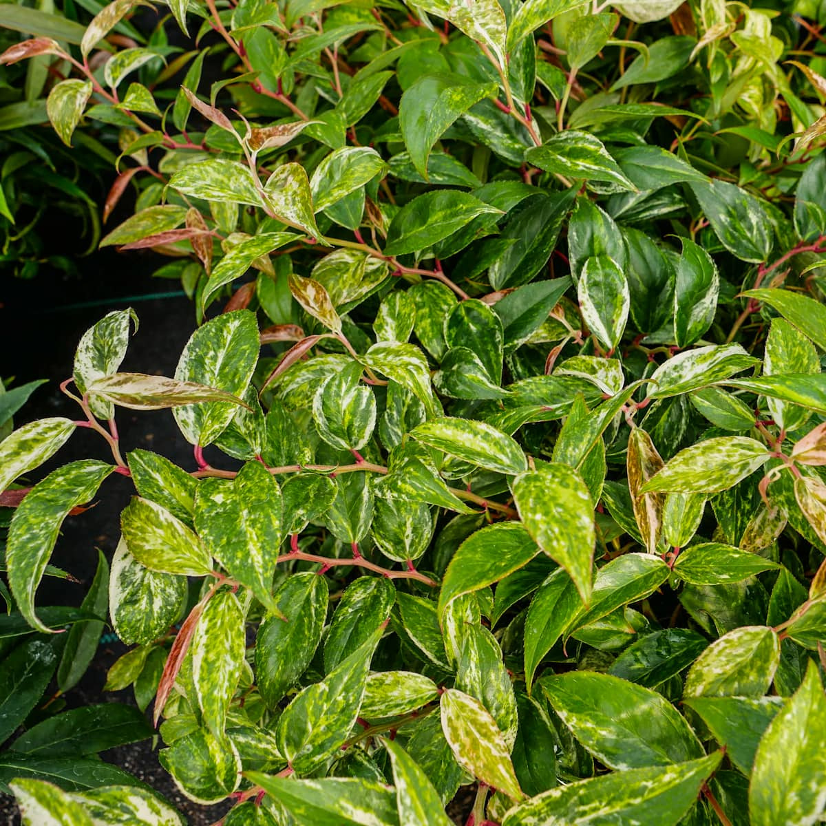 Kiścień Wawrzynowy Makijaż (Leucothoe fontanesiana Makijaż) to oryginalny, niski krzew liściasty, który zyskał popularność dzięki niezwykle dekoracyjnym liściom. Rośnie umiarkowanie wolno, dzięki czemu łatwo utrzymać go w ryzach, a jego kompaktowy pokrój sprawia, że doskonale nadaje się do mniejszych ogrodów i uprawy w pojemnikach. Makijaż dorasta zwykle do 60–80 cm wysokości i osiąga około 70–100 cm szerokości. To roślina zimozielona, dlatego cieszy oczy nie tylko w sezonie letnim, ale również zimą, gdy większość roślin traci swój urok. Największą ozdobą są liście w wielobarwnej mozaice – zielone z jasnymi smugami, przebarwiające się sezonowo na czerwone i bordowe odcienie. Efekt ten sprawia, że krzew wygląda atrakcyjnie o każdej porze roku i stanowi wyjątkowy akcent kolorystyczny w ogrodzie. Sadzonki kiścienia tej odmiany są coraz chętniej wybierane przez miłośników niebanalnych roślin ozdobnych. To świetna propozycja dla osób, które chcą wprowadzić do ogrodu odrobinę nowoczesności i lekkości – idealne sadzonki krzewów liściastych dla tych, którzy cenią barwną różnorodność.