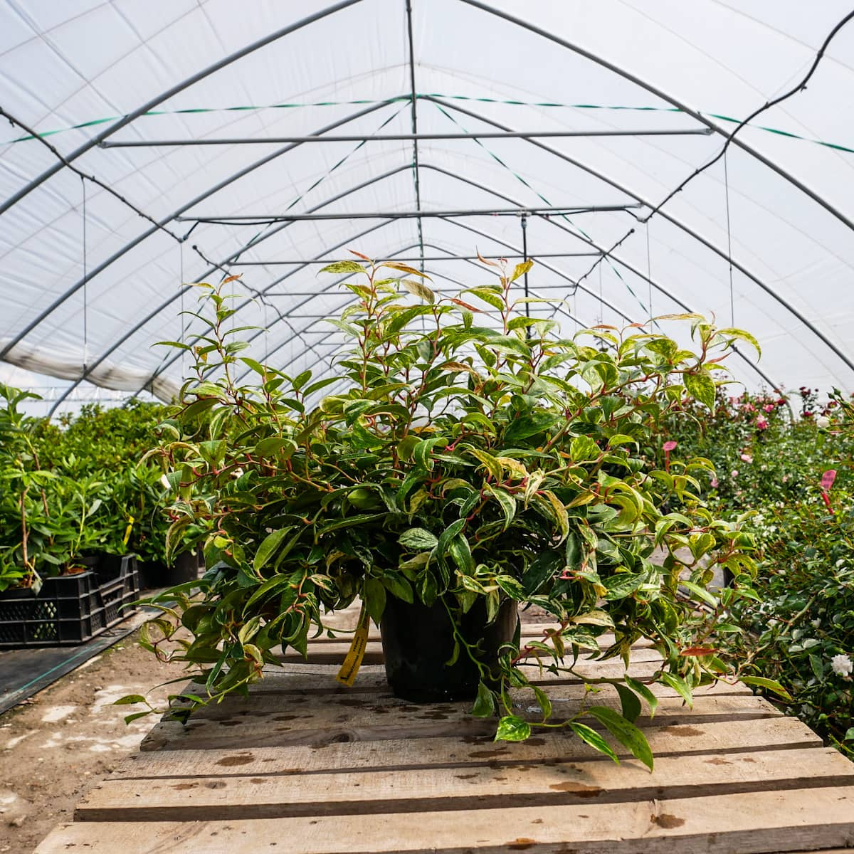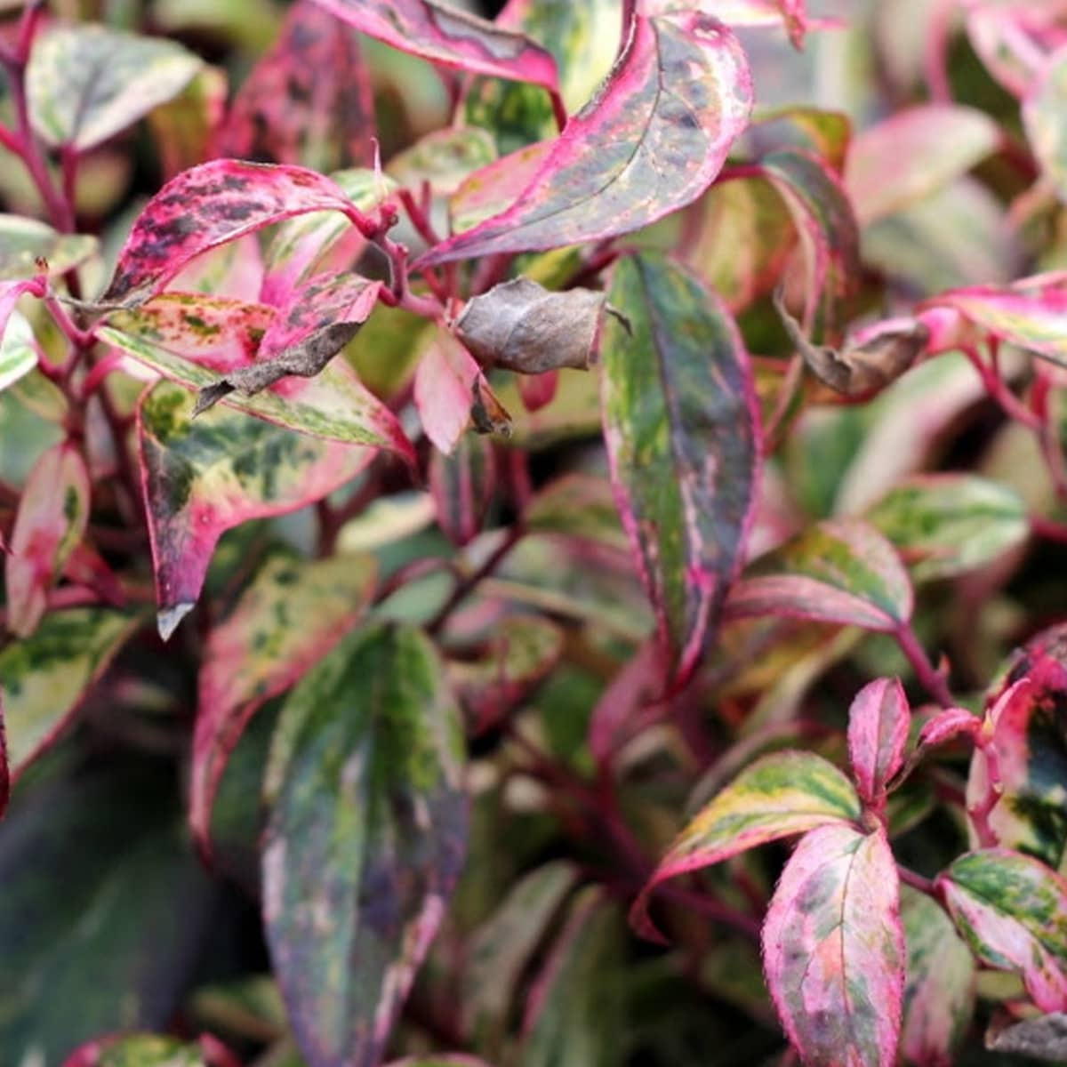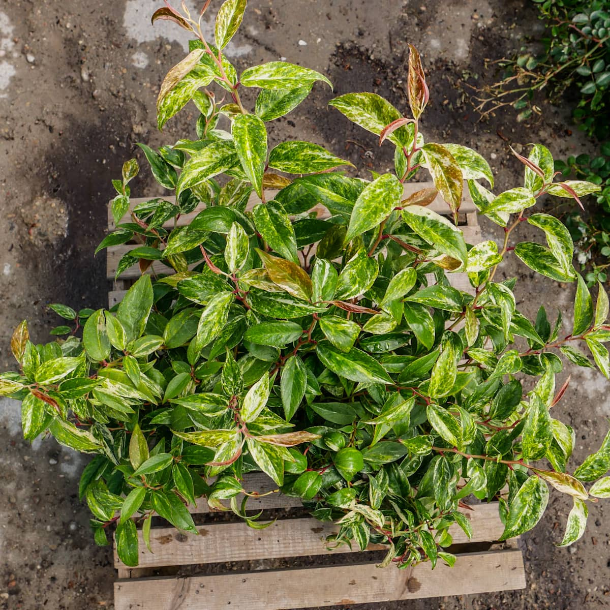 Kiścień Wawrzynowy Makijaż (Leucothoe fontanesiana Makijaż) to oryginalny, niski krzew liściasty, który zyskał popularność dzięki niezwykle dekoracyjnym liściom. Rośnie umiarkowanie wolno, dzięki czemu łatwo utrzymać go w ryzach, a jego kompaktowy pokrój sprawia, że doskonale nadaje się do mniejszych ogrodów i uprawy w pojemnikach. Makijaż dorasta zwykle do 60–80 cm wysokości i osiąga około 70–100 cm szerokości. To roślina zimozielona, dlatego cieszy oczy nie tylko w sezonie letnim, ale również zimą, gdy większość roślin traci swój urok. Największą ozdobą są liście w wielobarwnej mozaice – zielone z jasnymi smugami, przebarwiające się sezonowo na czerwone i bordowe odcienie. Efekt ten sprawia, że krzew wygląda atrakcyjnie o każdej porze roku i stanowi wyjątkowy akcent kolorystyczny w ogrodzie. Sadzonki kiścienia tej odmiany są coraz chętniej wybierane przez miłośników niebanalnych roślin ozdobnych. To świetna propozycja dla osób, które chcą wprowadzić do ogrodu odrobinę nowoczesności i lekkości – idealne sadzonki krzewów liściastych dla tych, którzy cenią barwną różnorodność.